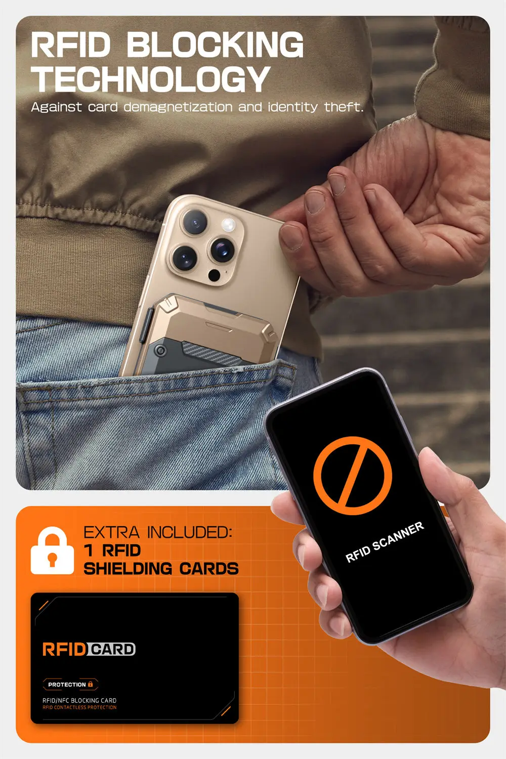 [Security & Privacy]: Included 1 RFID Card with RFID blocking technology to prevent card demagnetization and identity theft, it can protect the information security of all cards in the wallet.
