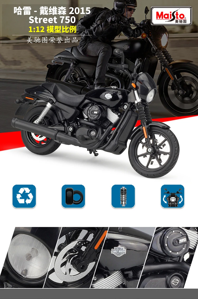 Maiisto-Harley 2015 Modelo de Motocicleta Street 750, Brinquedo Diecast Metal, Motocicletas de Corrida, Coleção Simulação, Presente Infantil, 1:12