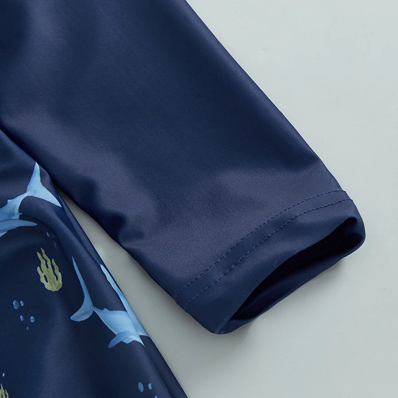 Maiô infantil de 0 a 5 anos, roupa de banho com estampa de tubarão, manga longa, meio zíper, com chapéu de sol, 2 peças, roupa de banho para crianças pequenas