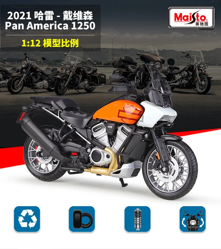 Maisto 1:12 Harley Davidson 2021 Pan America 1250 Liga Esportes Modelo de Motocicleta Diecast Street Racing Modelo de Motocicleta Presente para Crianças