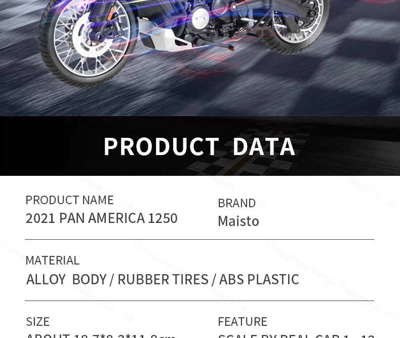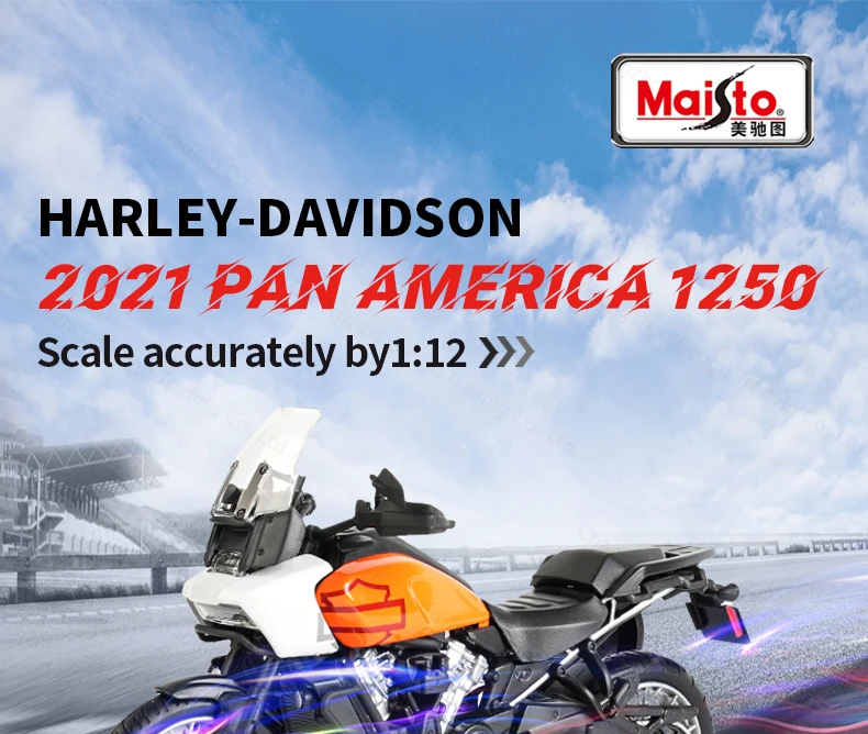 Maisto 1:12 Harley Davidson 2021 Pan America 1250 Veículos fundidos colecionáveis Hobbies Modelo de motocicleta Brinquedos