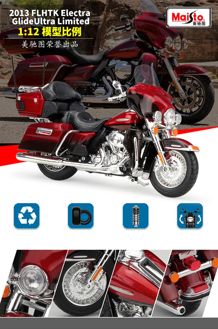 Maisto 1:12 harley flhtk electra glide ultra limitado liga clássico modelo de motocicleta diecasts lazer modelo de motocicleta crianças presentes