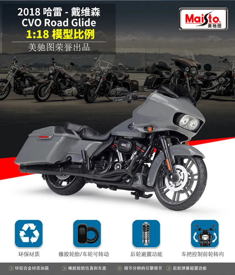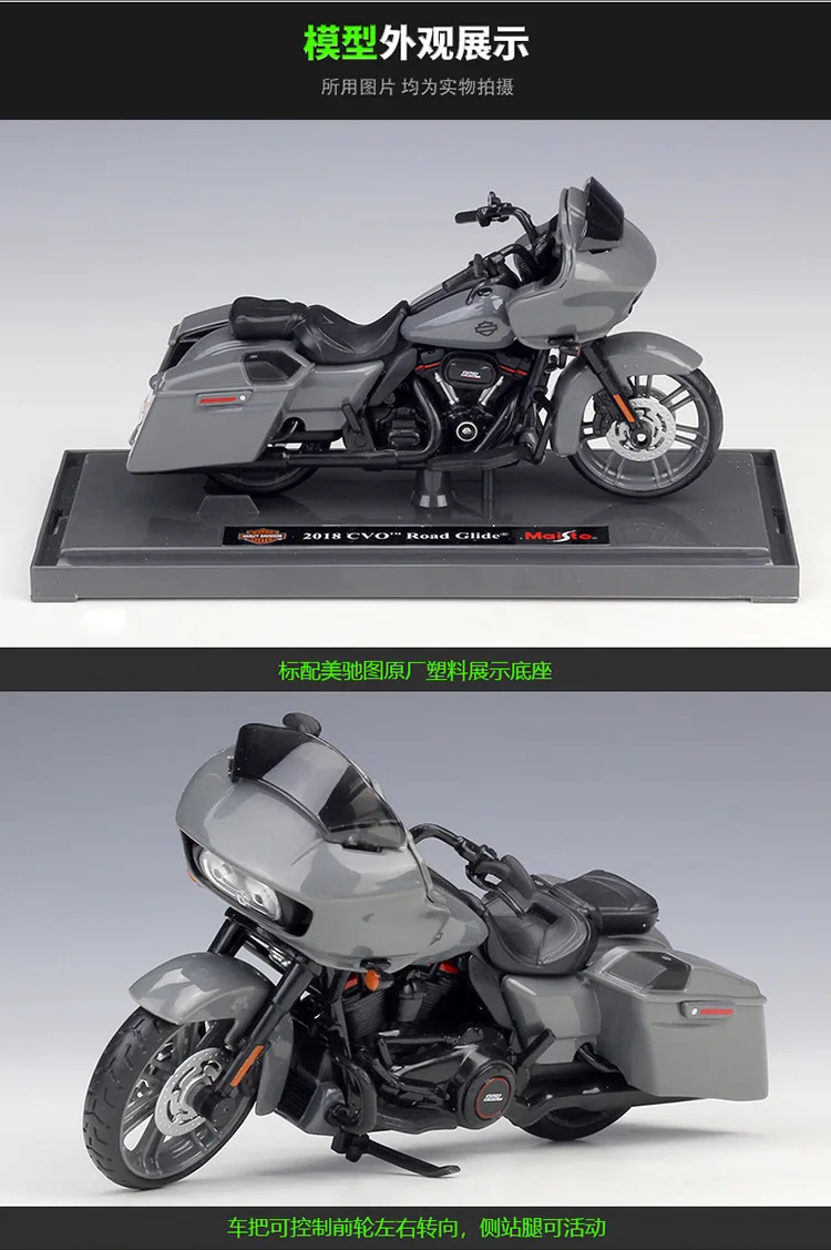 Maisto 1:18 2018 CVO Road Glide Die Cast Veículos Colecionáveis Hobbies Modelo de Motocicleta Brinquedos