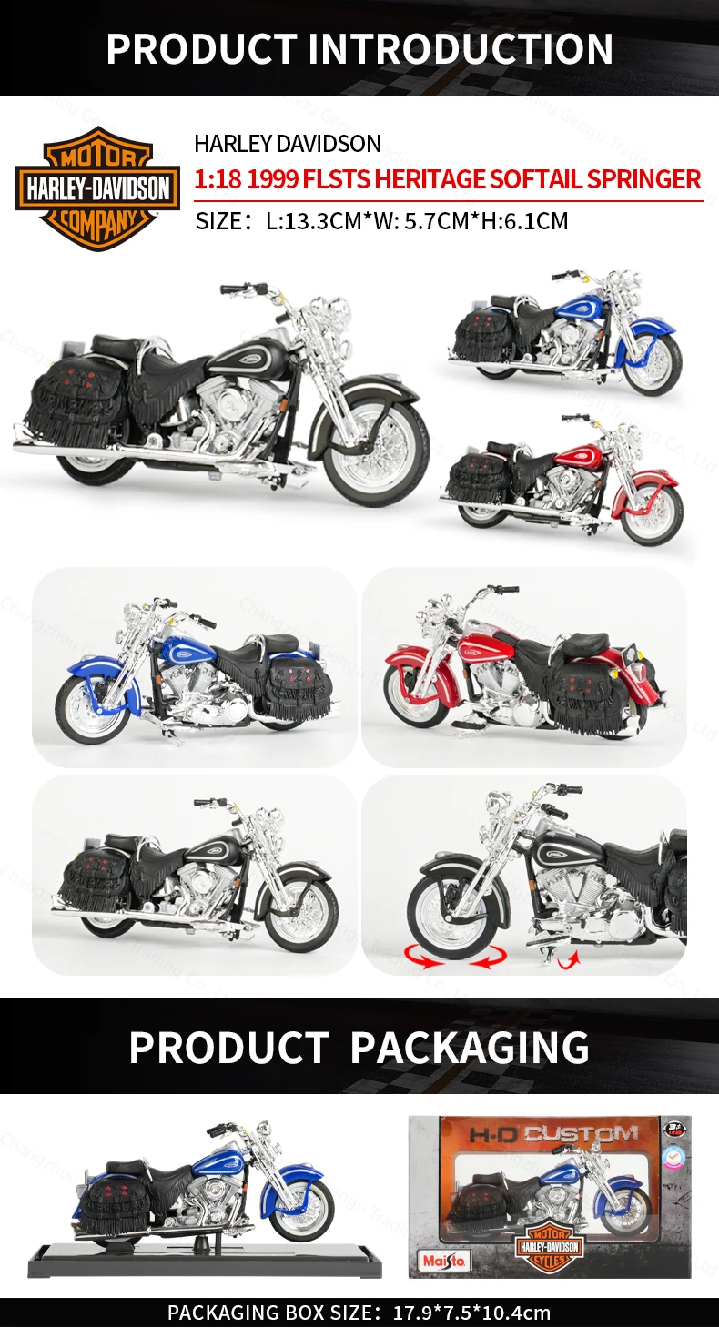 Maisto 1:18 Harley-Davidson 1999 FLSTS Heritage Softall Springer Vermelho Die Cast Veículos Colecionáveis Hobbies Modelo de Motocicleta Brinquedos