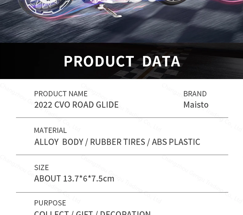 Maisto 1:18 Harley Davidson 2022 CVO Road Glide Die Cast Veículos Colecionáveis Hobbies Modelo de Motocicleta Brinquedos