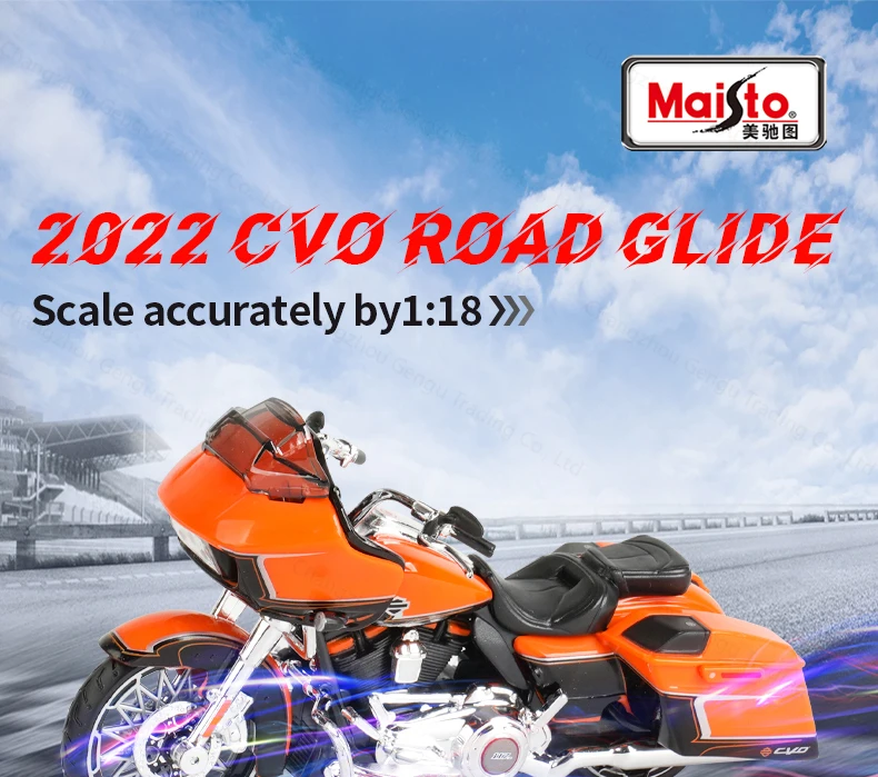 Maisto 1:18 Harley-Davidson 2022 CVO Road Glide Die Cast Veículos Colecionáveis Hobbies Modelo de Motocicleta Brinquedos