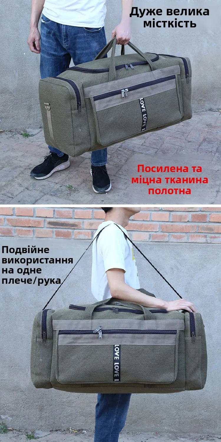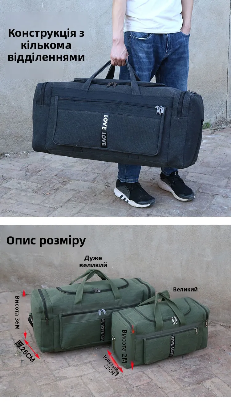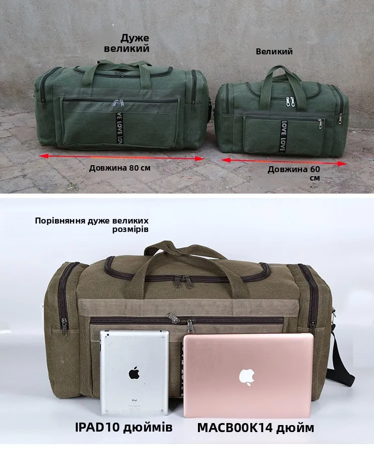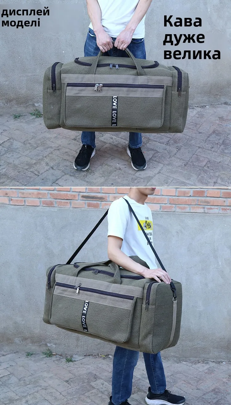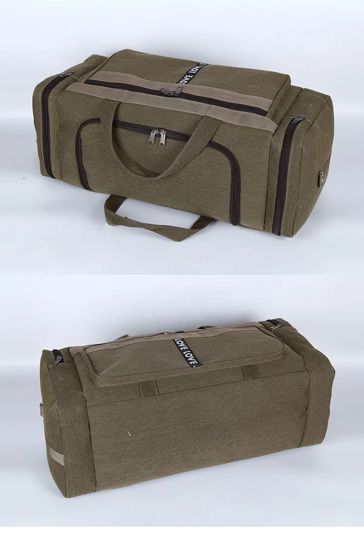 Mala de Viagem de Lona de ande Capacidade, Mochila Estilo Vintage com Múltiplos Cartimentos para Roupas