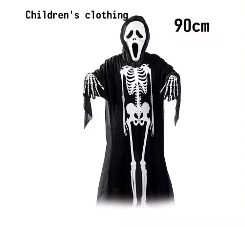 Manto preto para festa de Halloween, capa para crianças e adultos, crânio e esqueleto, fantasia de baile, adereço, presentes de festa, 2025