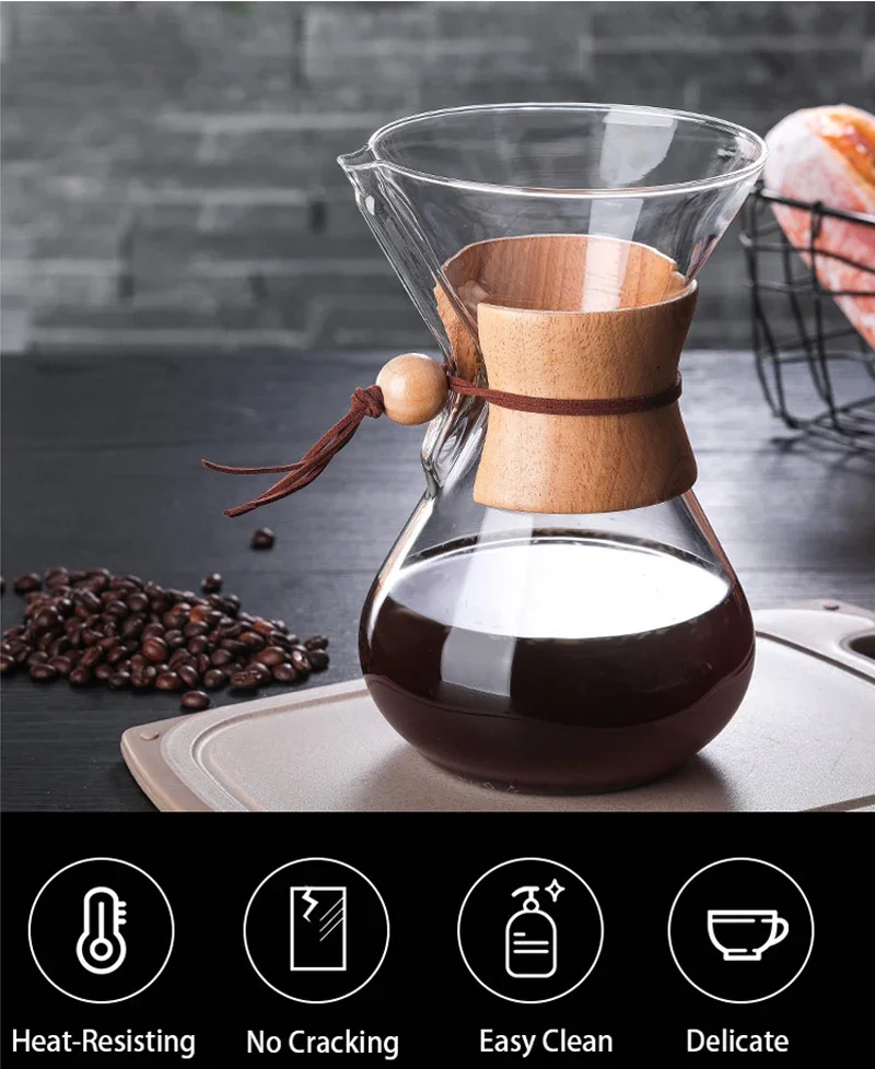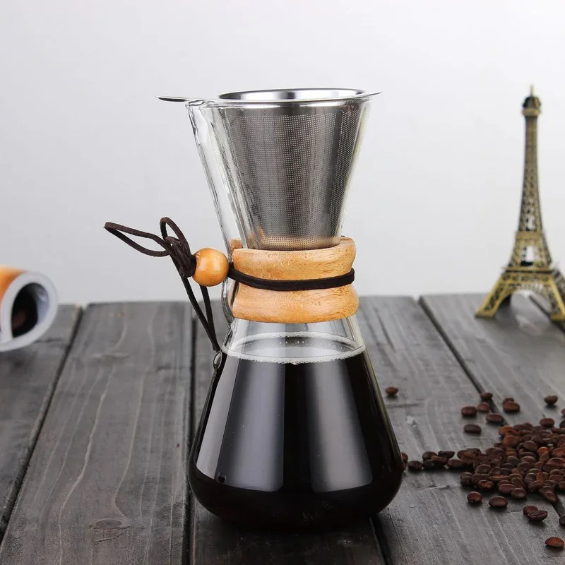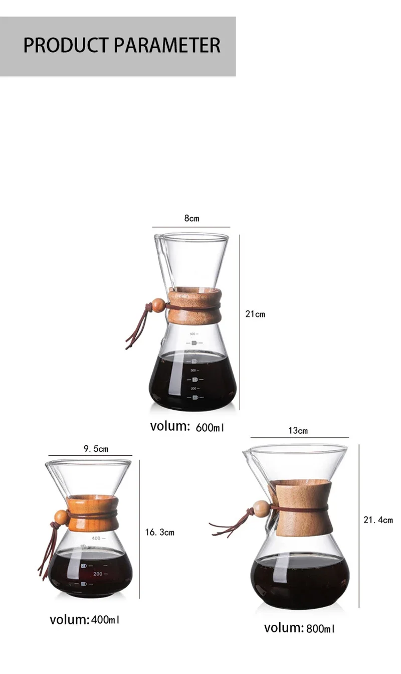 Mão Brewed Coffee Sharing Pot, Tela de filtro, Coffee Filter Cup Set, Gotejamento Pequeno Pote De Vidro Doméstico, 400-800ml