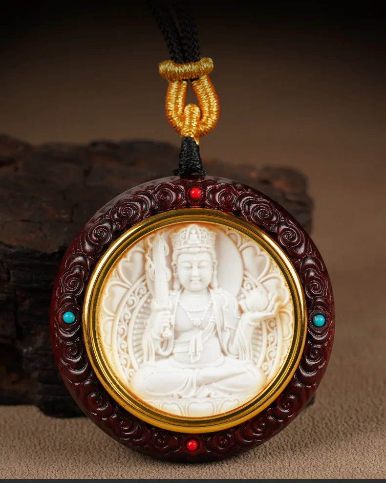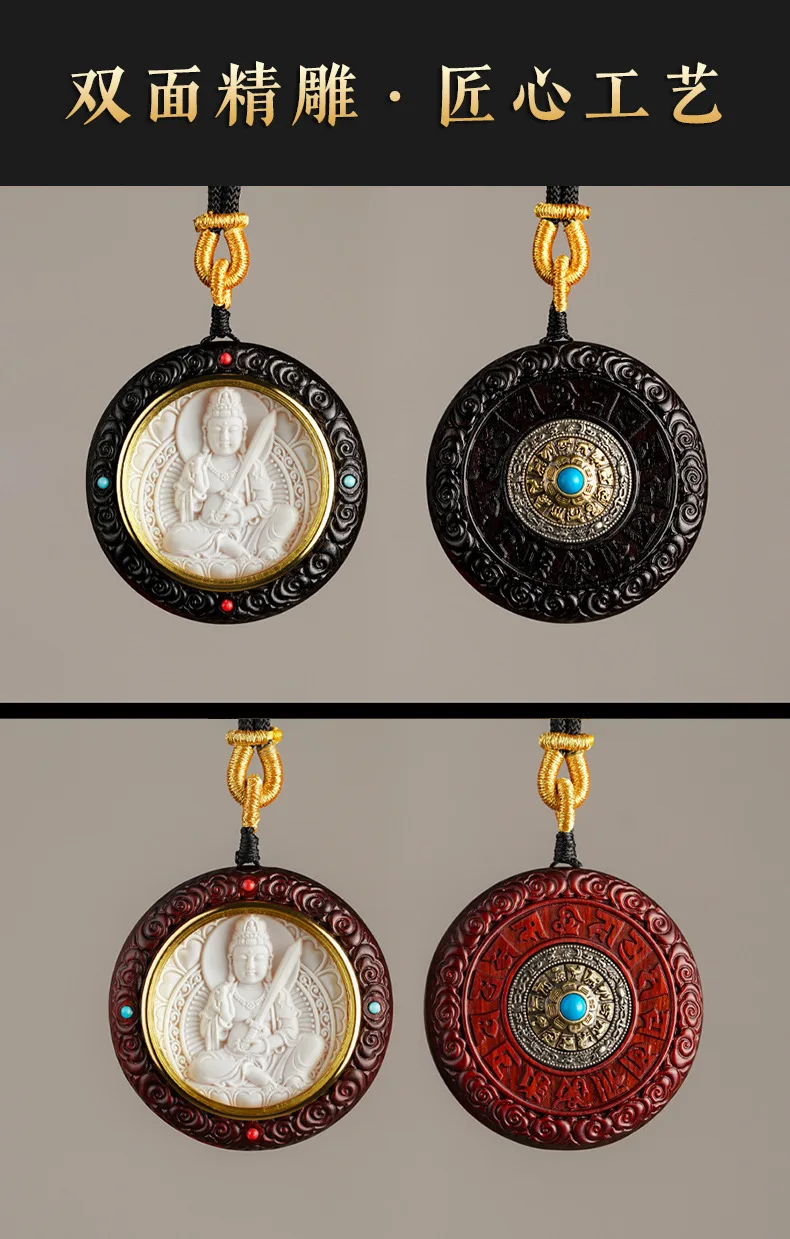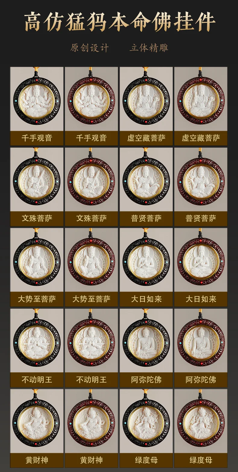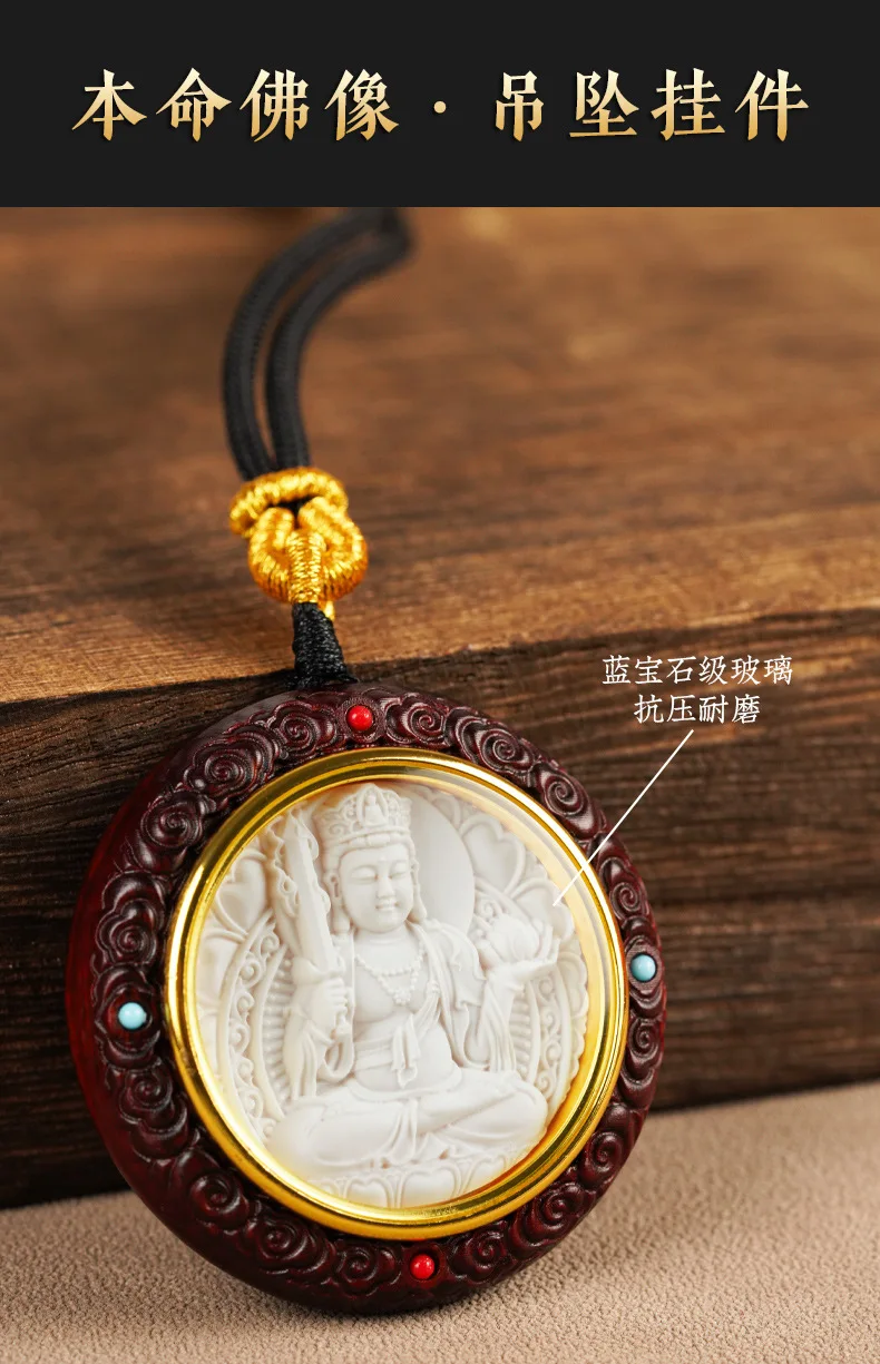 - > Marca redonda de Buda Natal, colar doze santo patrono do zodíaco, sândalo vermelho natural incrustado com marfim de mamut de alta imitação