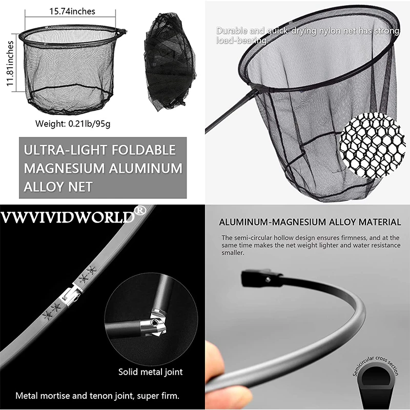 Marca VWVIVIDWORLD, 1,8-3,45 m, rede de pesca portátil de carbono, terra de pesca, rede de mão, pólo telescópico dobrável, vara de pesca