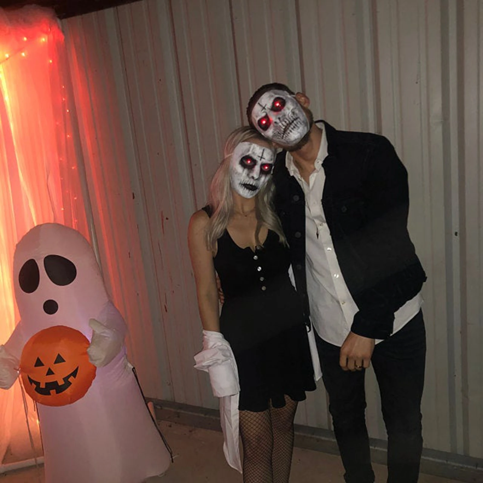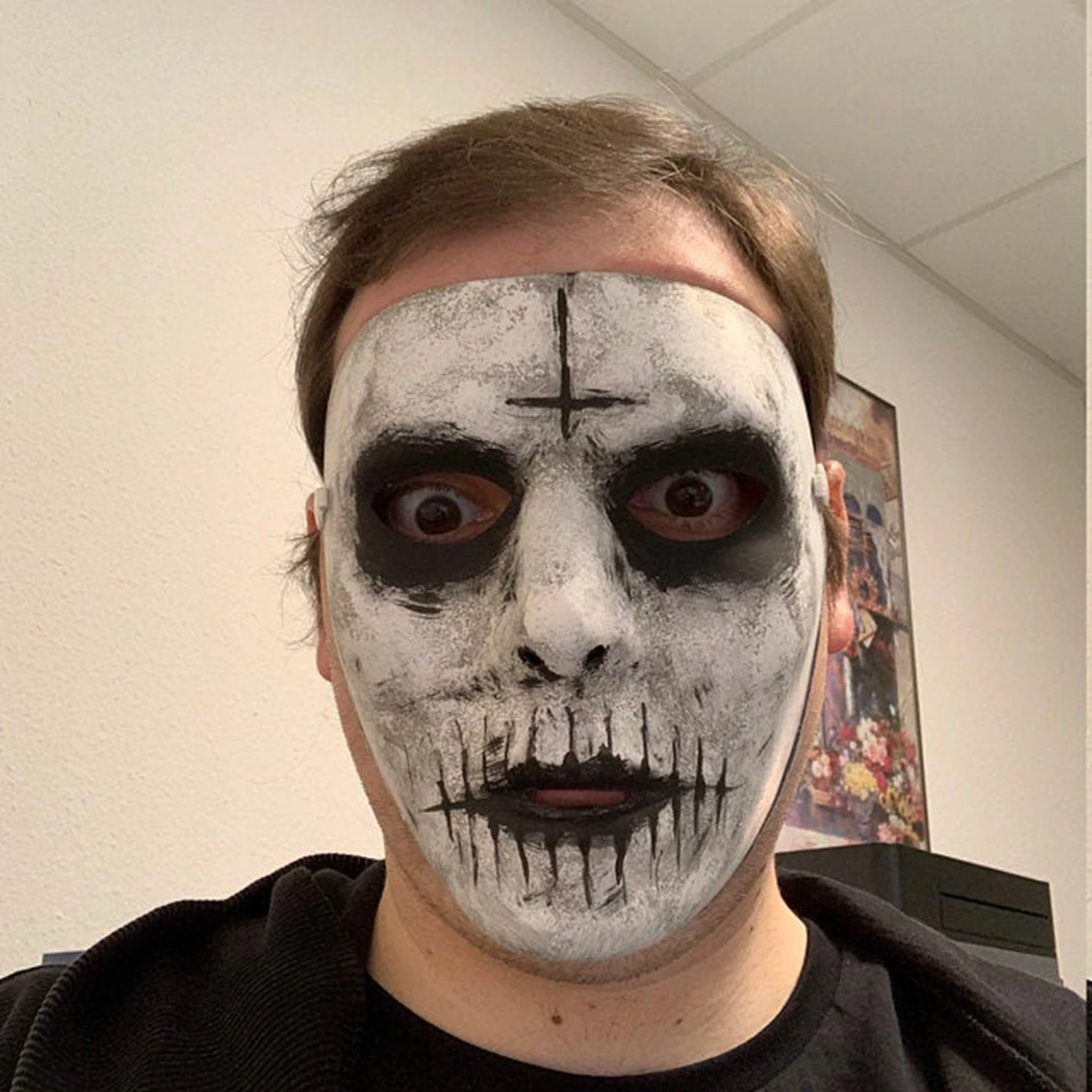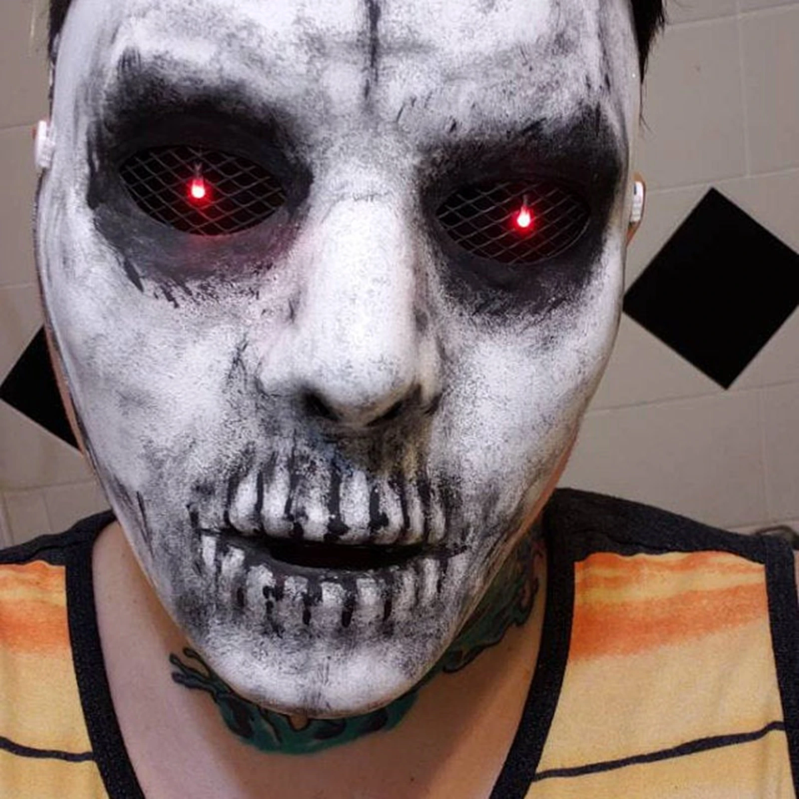 Máscara de assassino de demônio horror zumbi brilhante olho vermelho chapelaria máscara de látex assustador masque para o dia das bruxas tema de páscoa adereços de festa