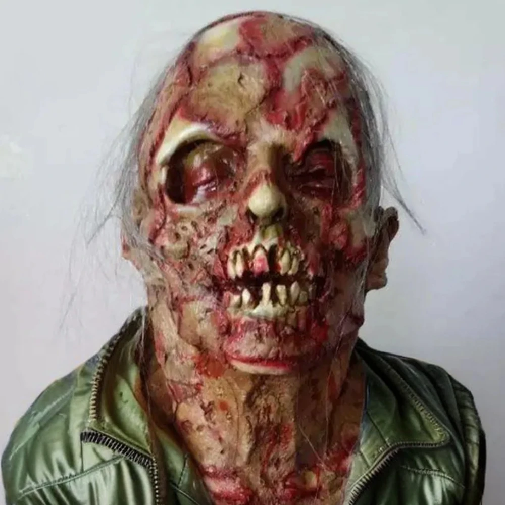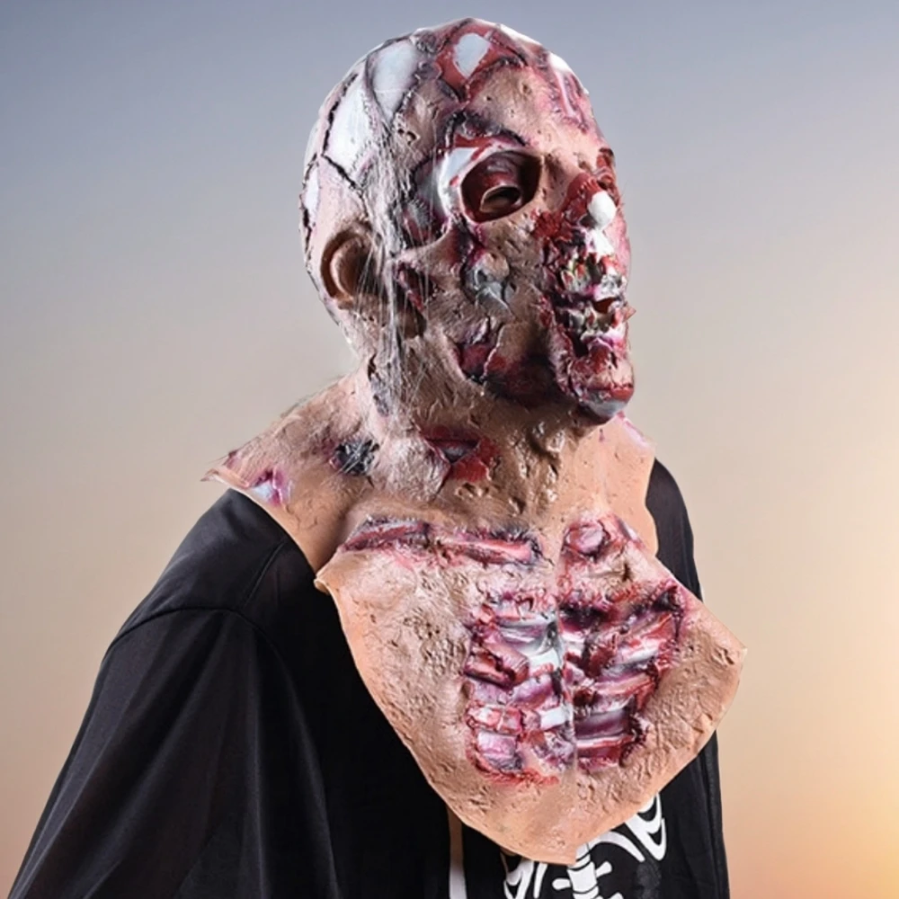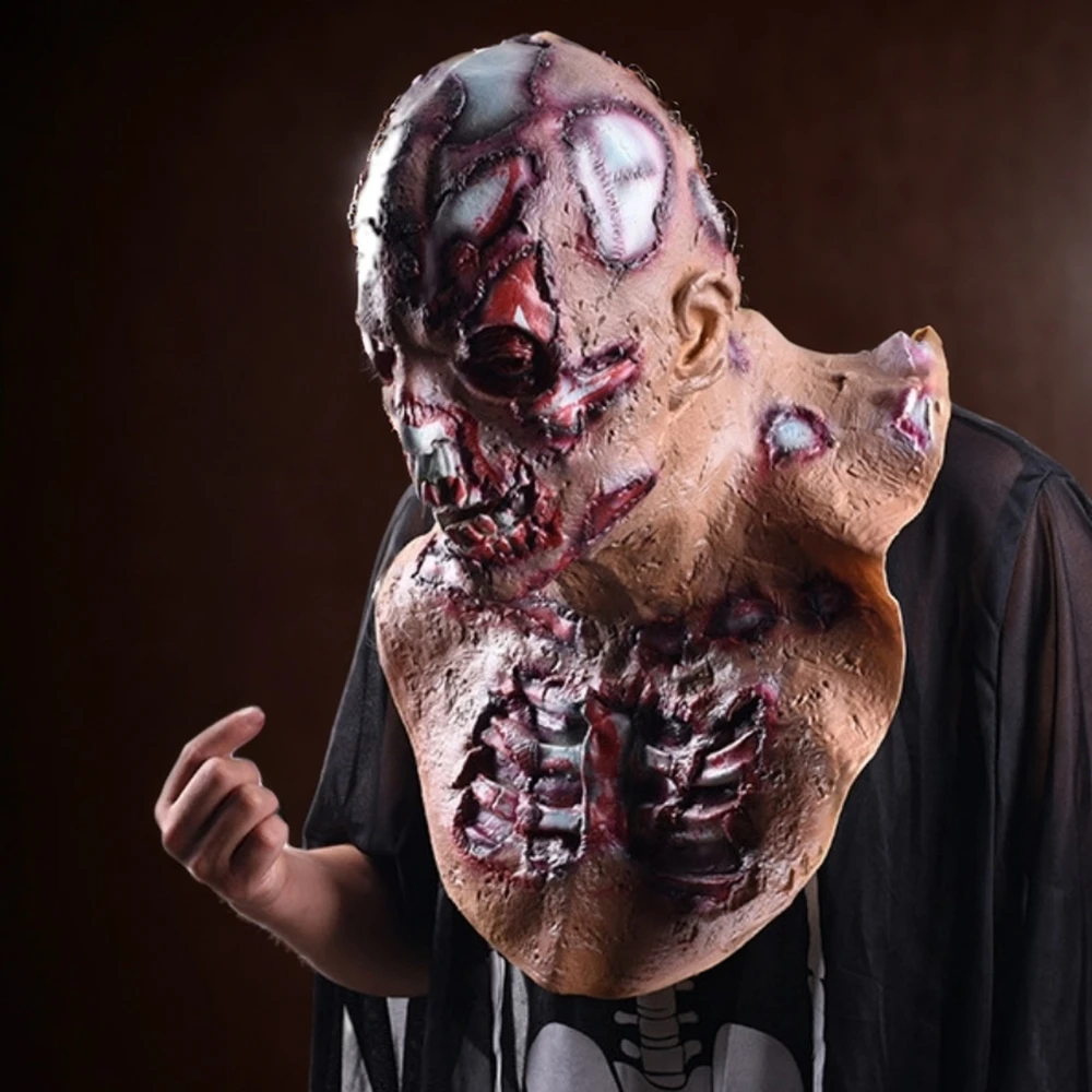 Assustador Máscara Esqueleto Cabeça Cheia Máscara Crânio Creepy Demônio Capacete Horror Cosplay Halloween Festa Sangrenta Adereços Traje com Pescoço Longo