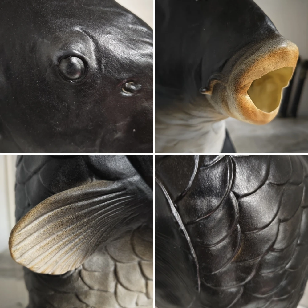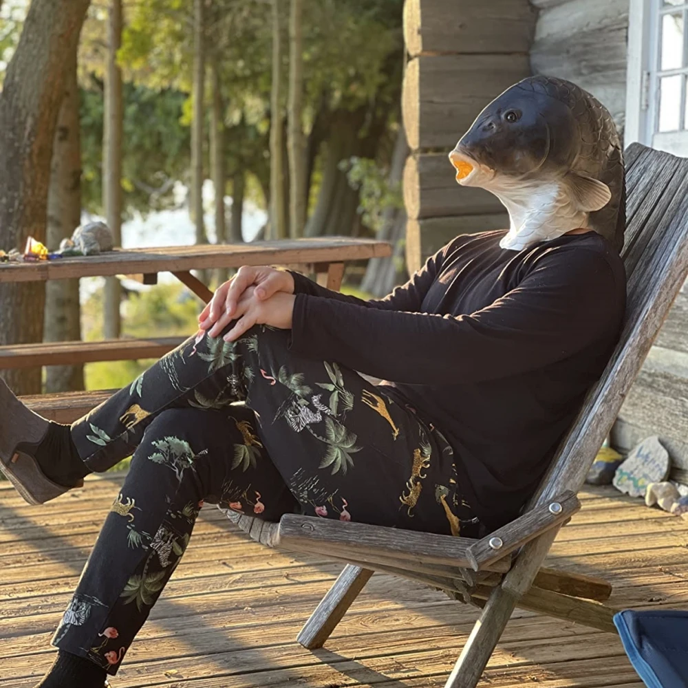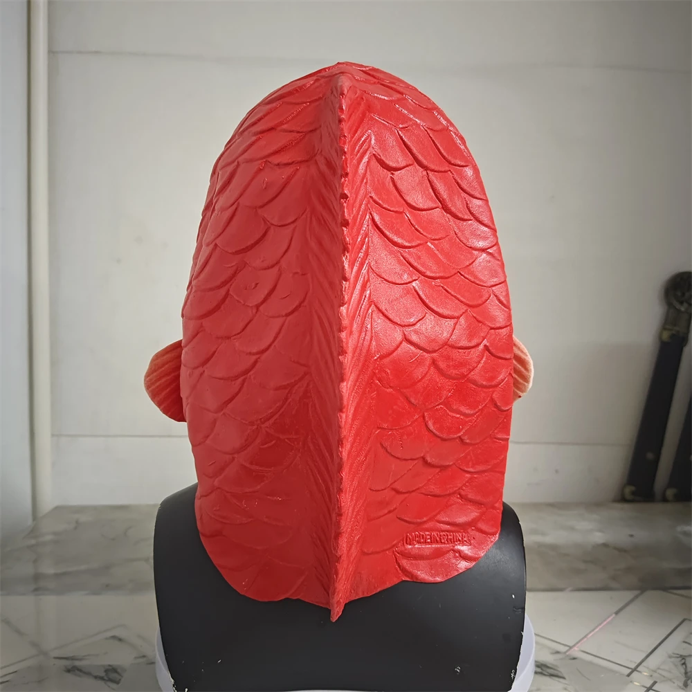 - > Máscara de cabeça de peixe engraçado animal máscara de carpa preta para festa de aniversário de halloween animal cosplay cabeça capa brincadeira prop peixe máscaras de látex
