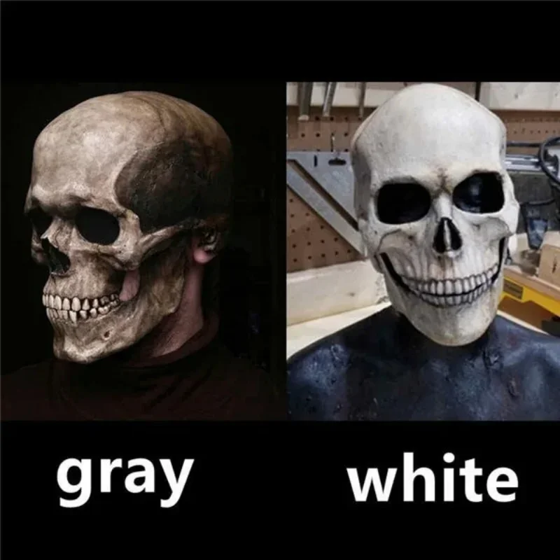 Máscara de crânio cabeça cheia Halloween Horror, adereços boca, máscara de látex mandíbula móvel, casa assombrada, brinquedo de festa para adultos, 1pc