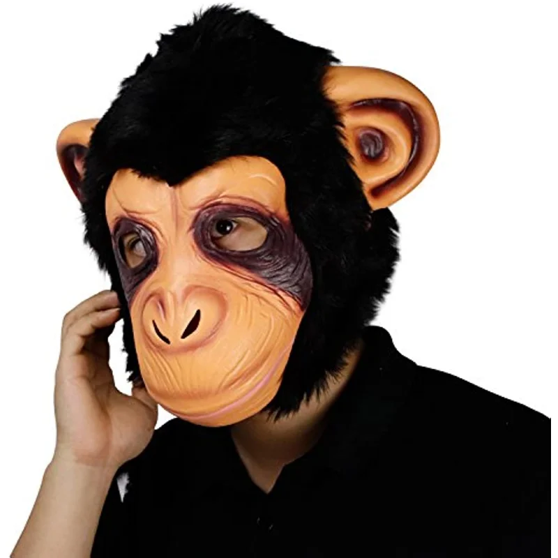 Máscara de macaco rosto cheio real látex rímel cabeça animal capuz halloween carnaval cosplay alegre chimpanzé masquerade traje para adulto