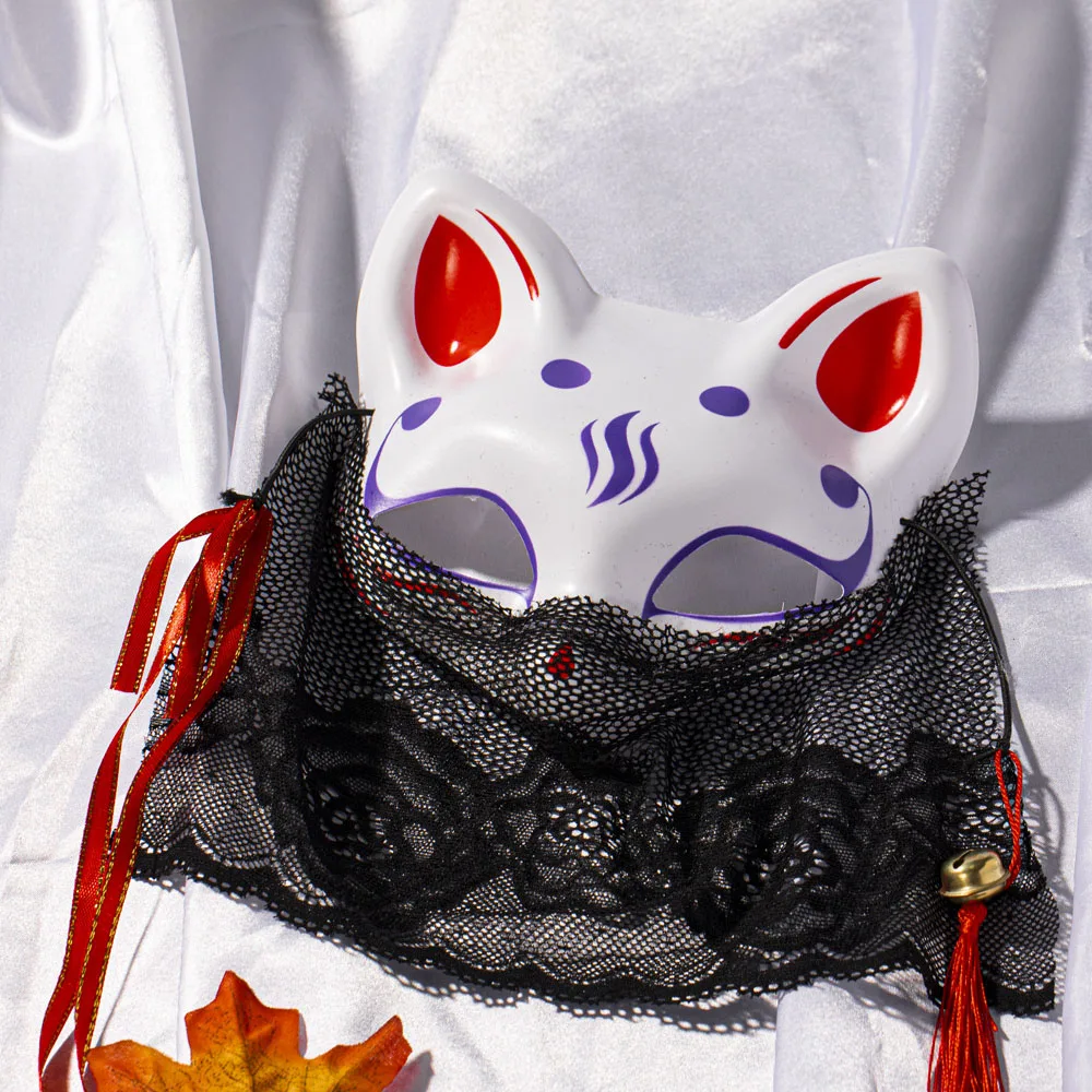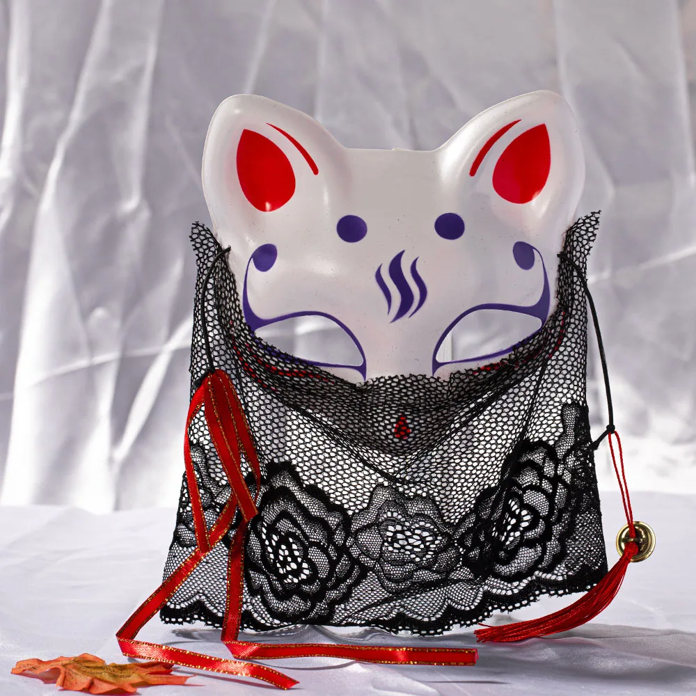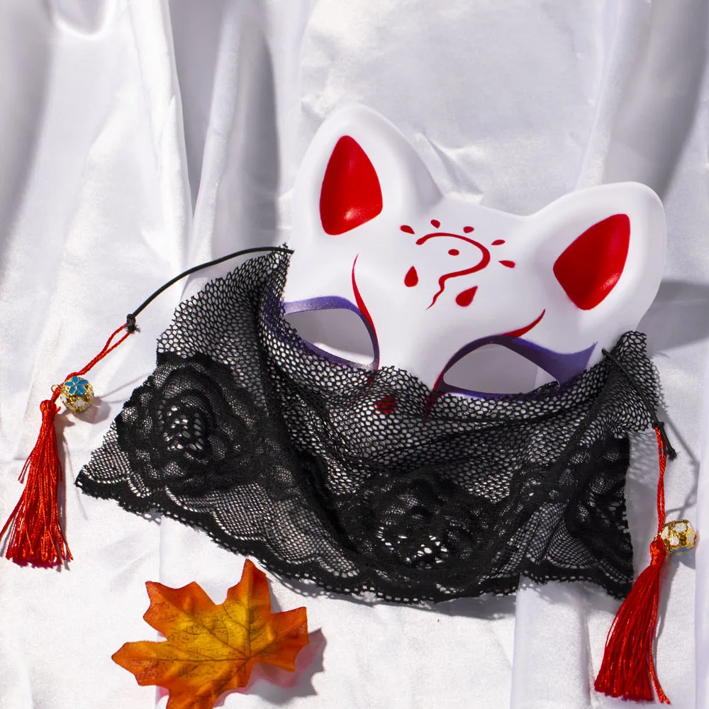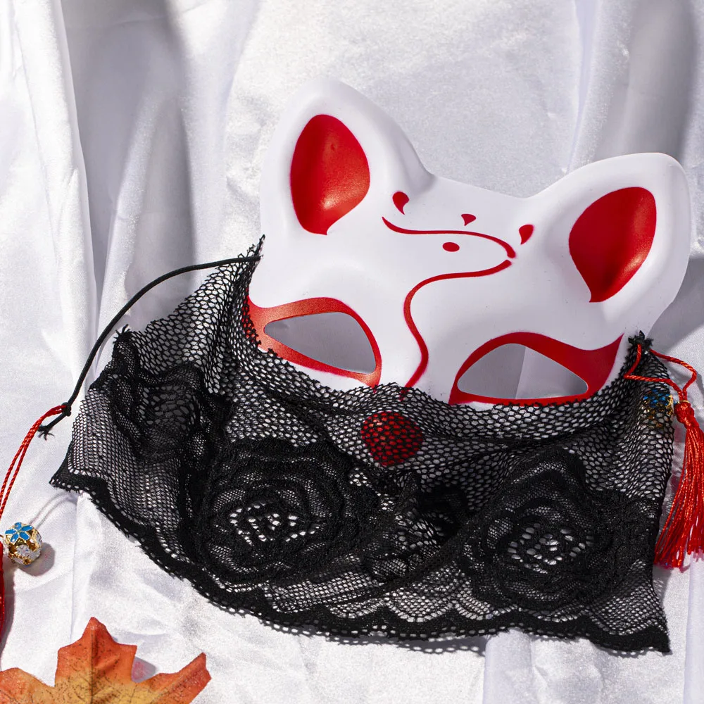 Máscara de renda preta japonesa para mulheres, máscaras de meia face, cosplay sexy, adereços de vestir fantasias de festa de Halloween