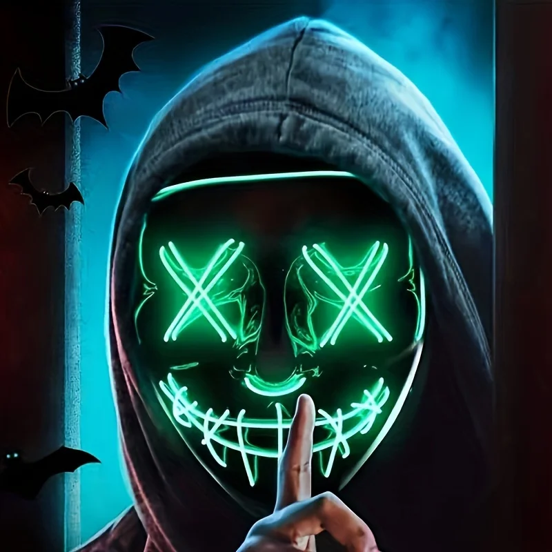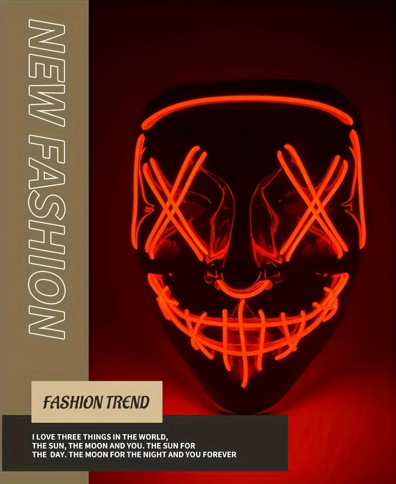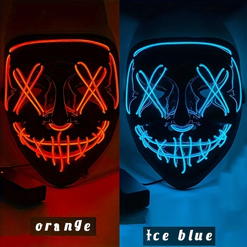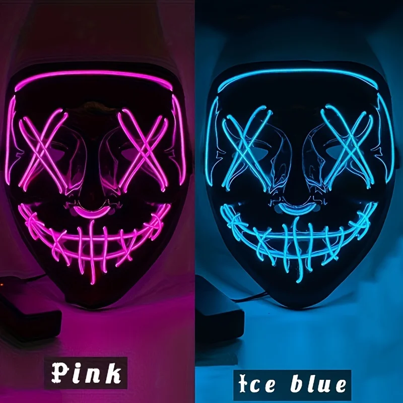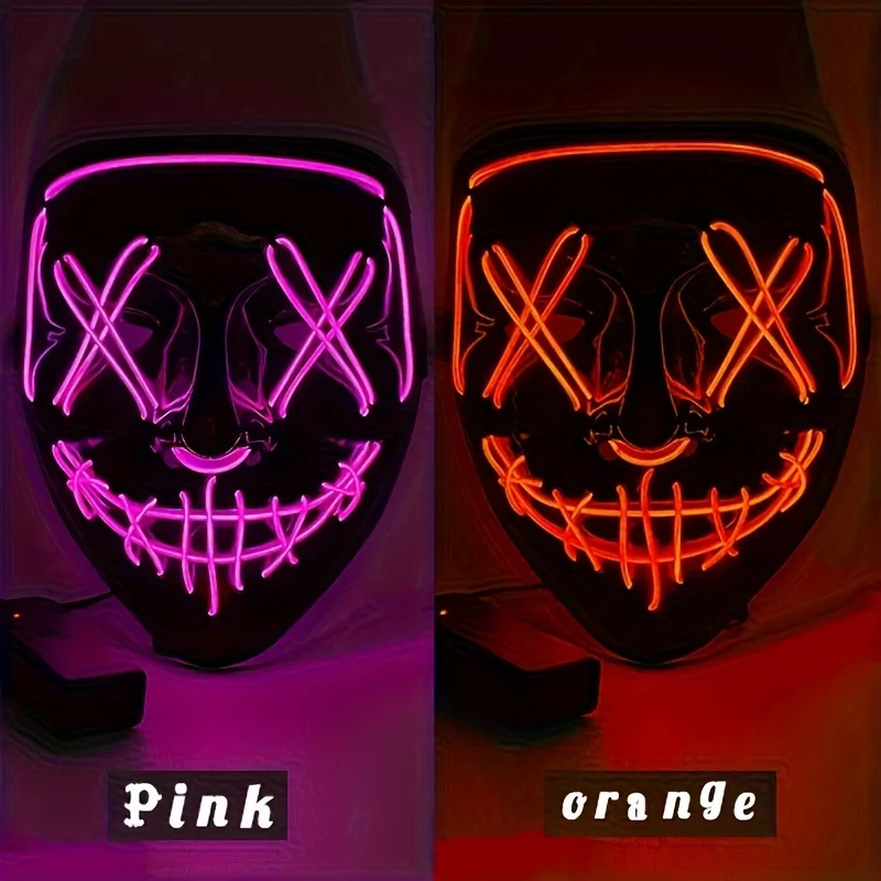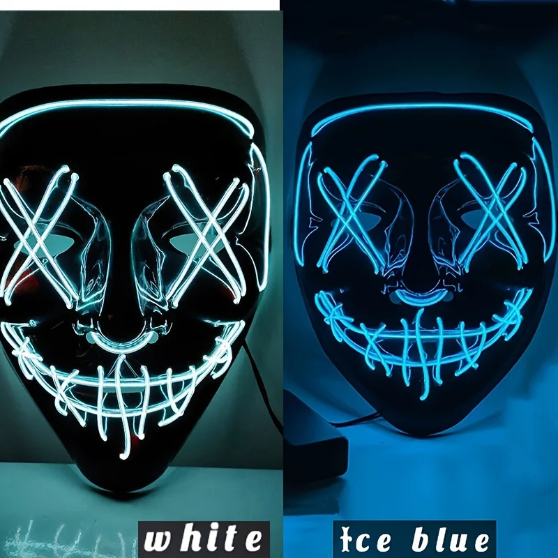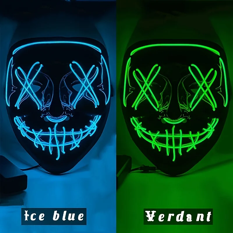 - 【Seguro】: A máscara é feita de PVC premium e fio de luz fria El que não causa danos UV, SEM efeitos adversos no corpo humano.