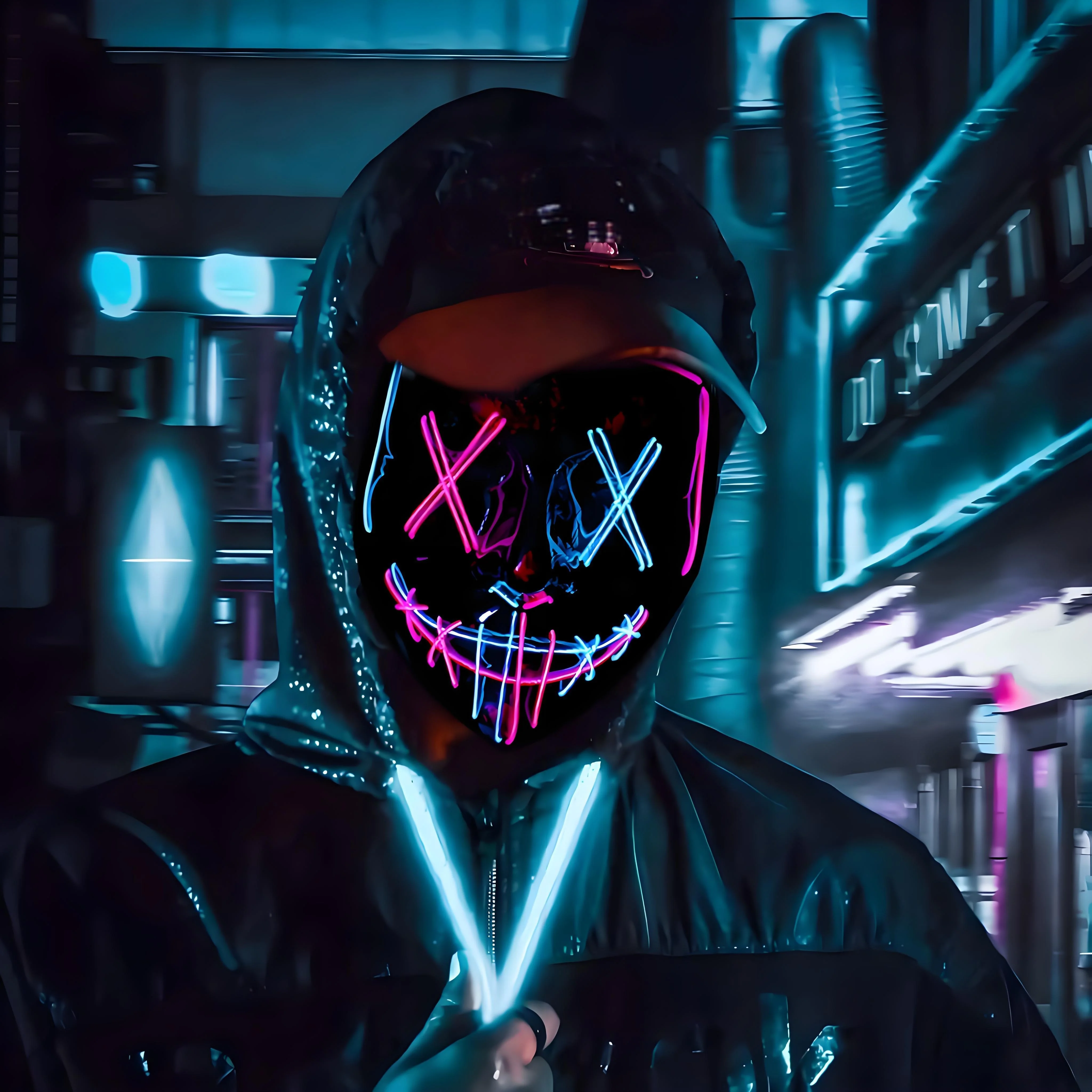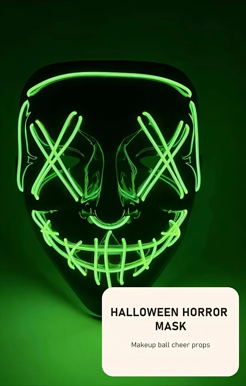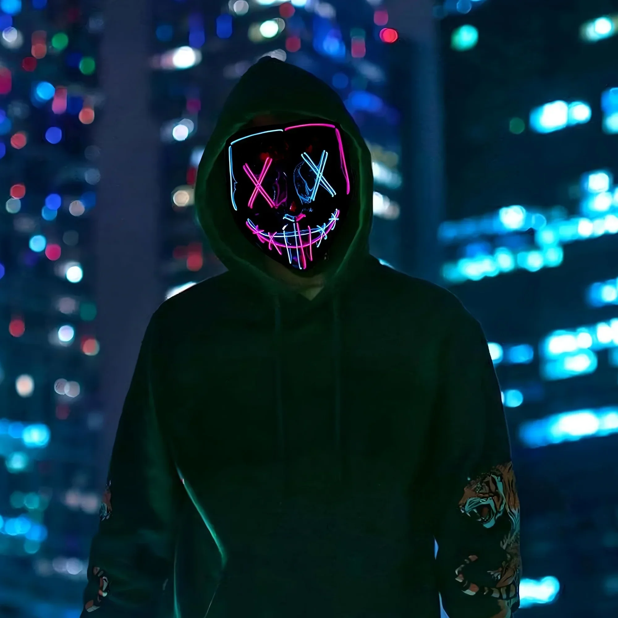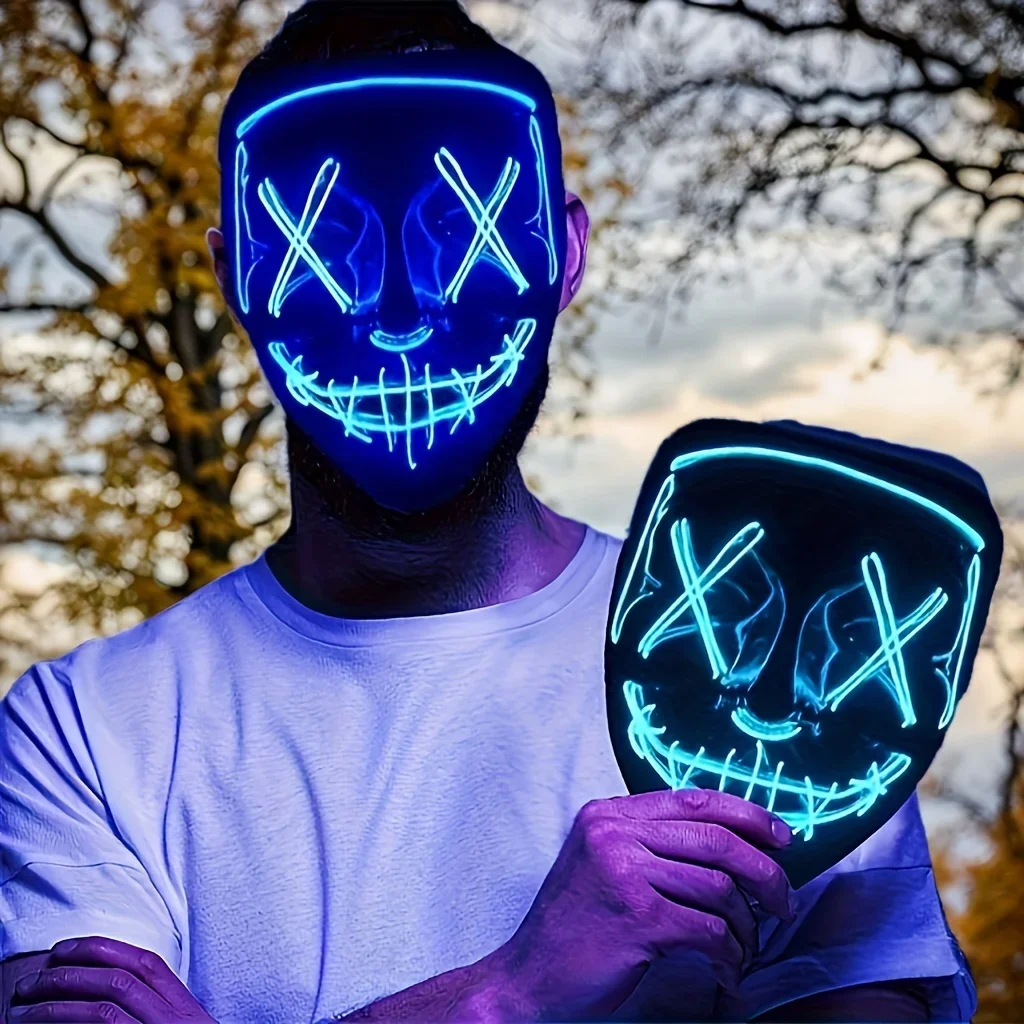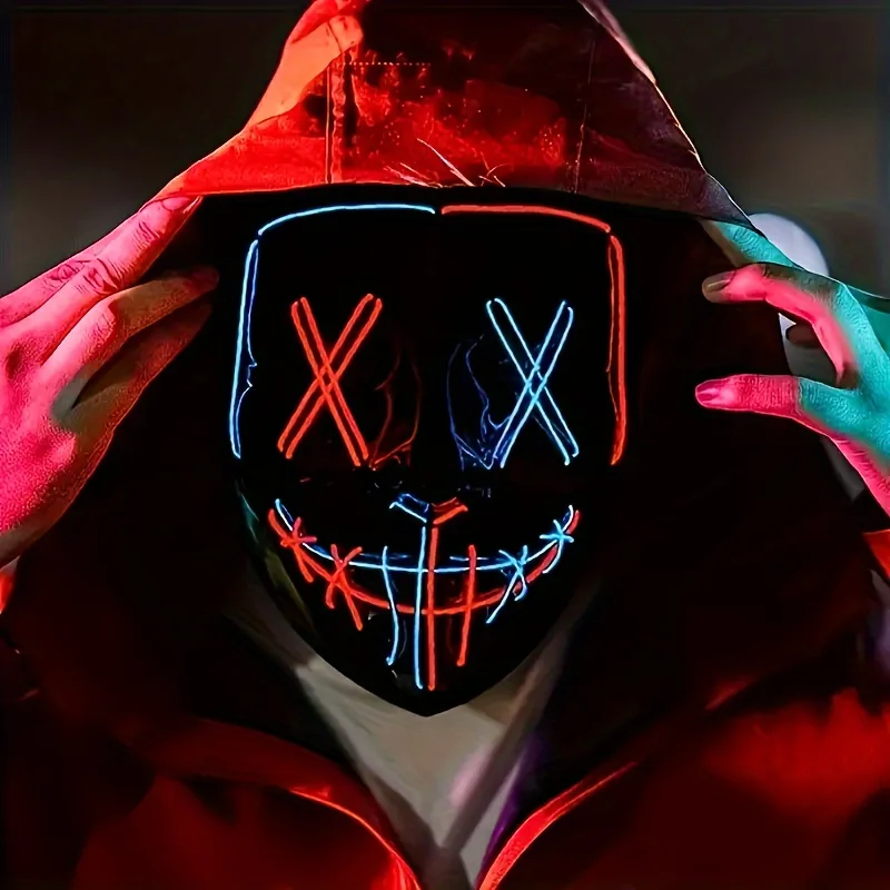 - 【Seguro】: A máscara é feita de PVC premium e fio de luz fria El que não causa danos UV, SEM efeitos adversos no corpo humano.