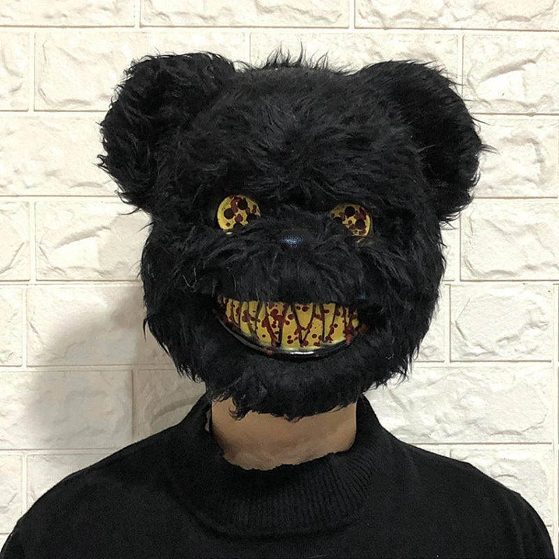 Máscara de urso de pelúcia sangrenta halloween fantasma festival máscara realista urso sangrento chapelaria desempenho prop halloween máscara de terror
