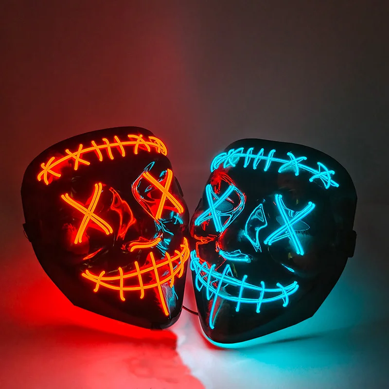 Máscara facial de purga de led luminosa, máscaras brilhantes, adereços de fantasia de halloween, máscara iluminada de néon, decoração de cosplay