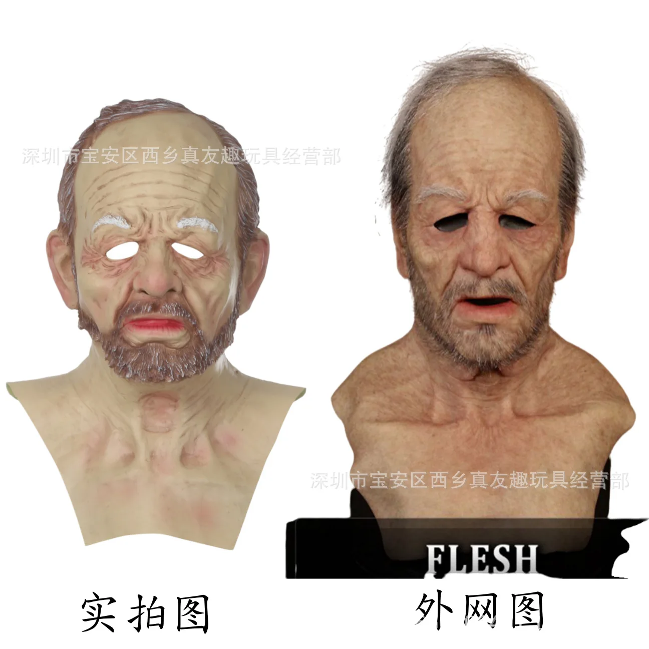 - > Máscara popular de Halloween para idosos, máscara de velho para idosos, peruca de velho para idosos, faixa de cabeça facial