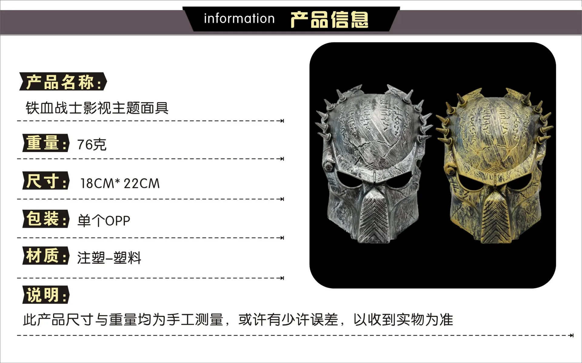 Máscara predator halloween máscara de terror lobo solitário máscara rebite snap máscara de ferro cosplay suprimentos de traje máscara novo predador quente máscaras