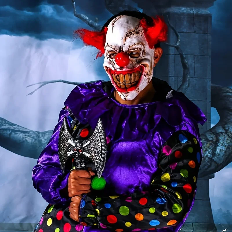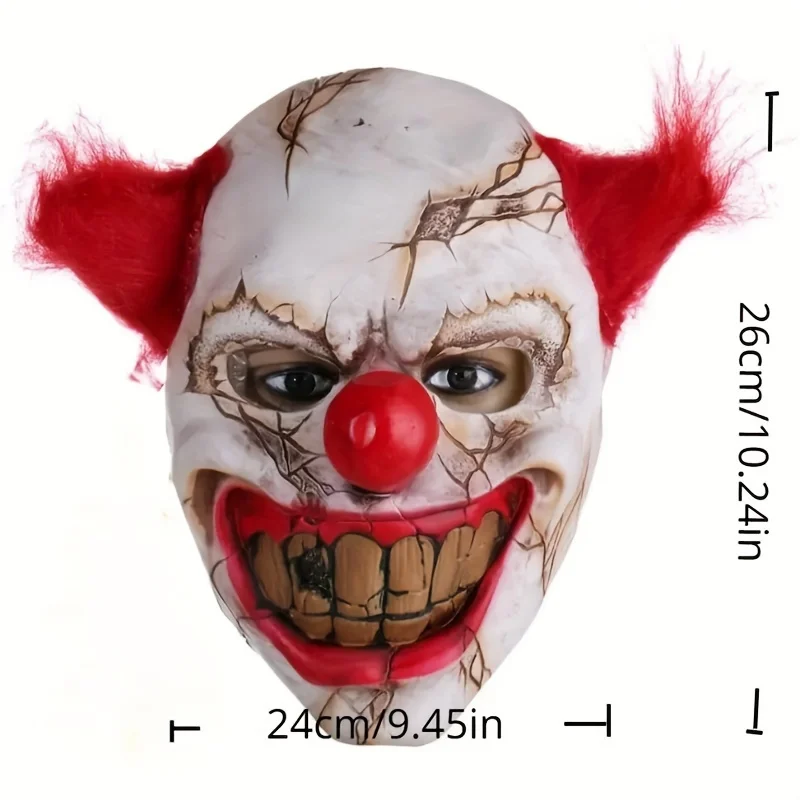 Latex Realistic Bad Clown Devil Mask, Peruca vermelha Sorridente Zombie Full Face Mask Dress Up Acessórios, Halloween Natal Cosplay Costume Props, Bar Club Rave Party Play Decors Fotografia Props, Performance de palco Acessórios