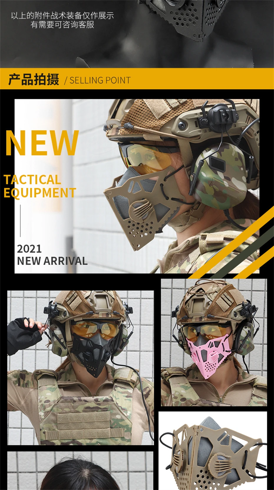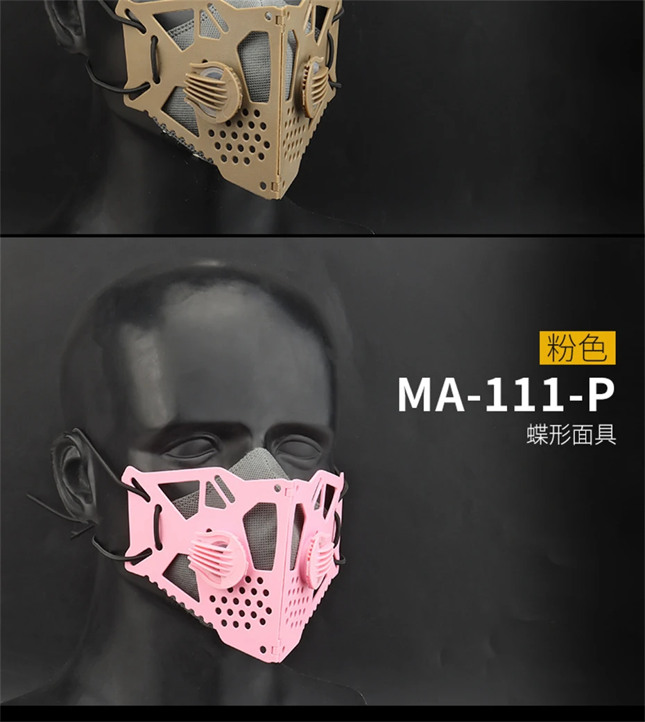 Máscara tática techwear para homens e mulheres, halloween, cosplay, proteção facial, ciclismo, hip hop, punk, meia máscara facial, preto, rosa, cáqui