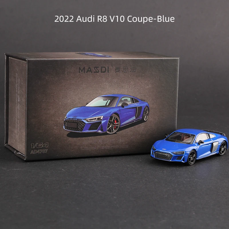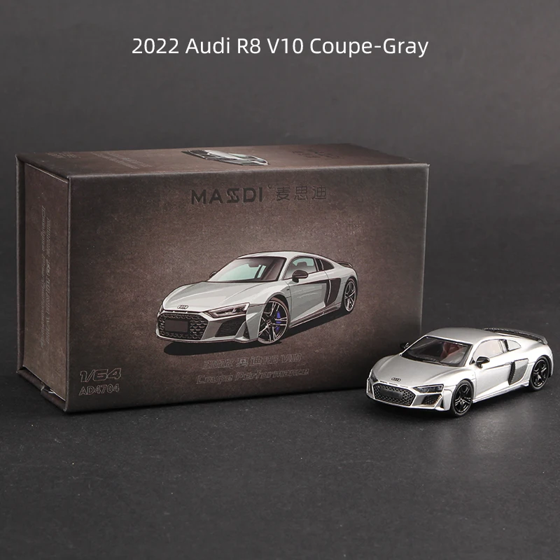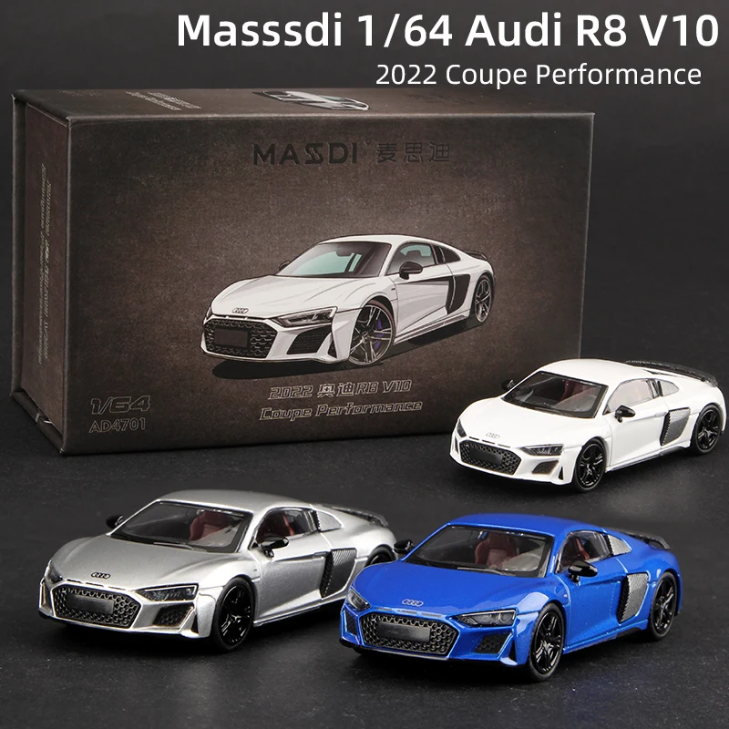 Massdi 1:64 Audi R8 V10 Coupe Performance 2022 Modelo de carro liga miniatura supercar veículo brinquedo fundido