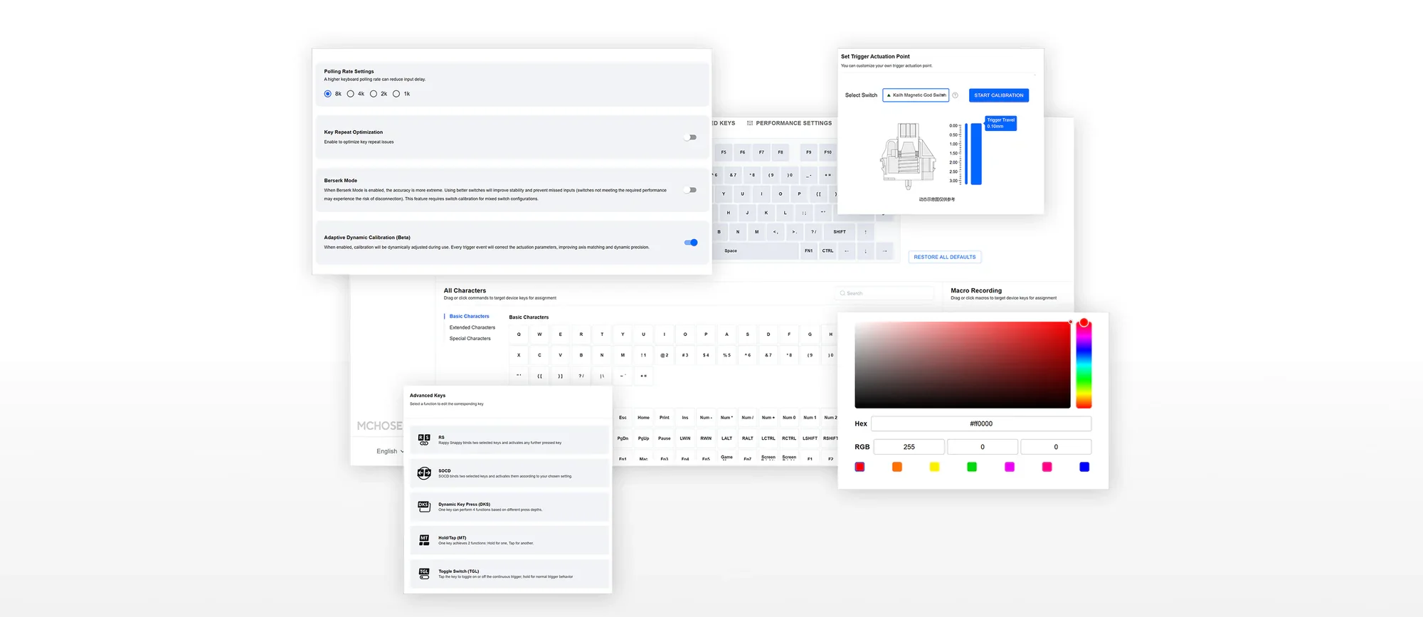 Personalize o deslocamento das teclas para combinar com seu estilo de jogo para desempenho máximo.Suporta macros SOCD, RS, DKS, MT, TGL e teclas para uma jogabilidade mais suave e ações mais rápidas e responsivas.