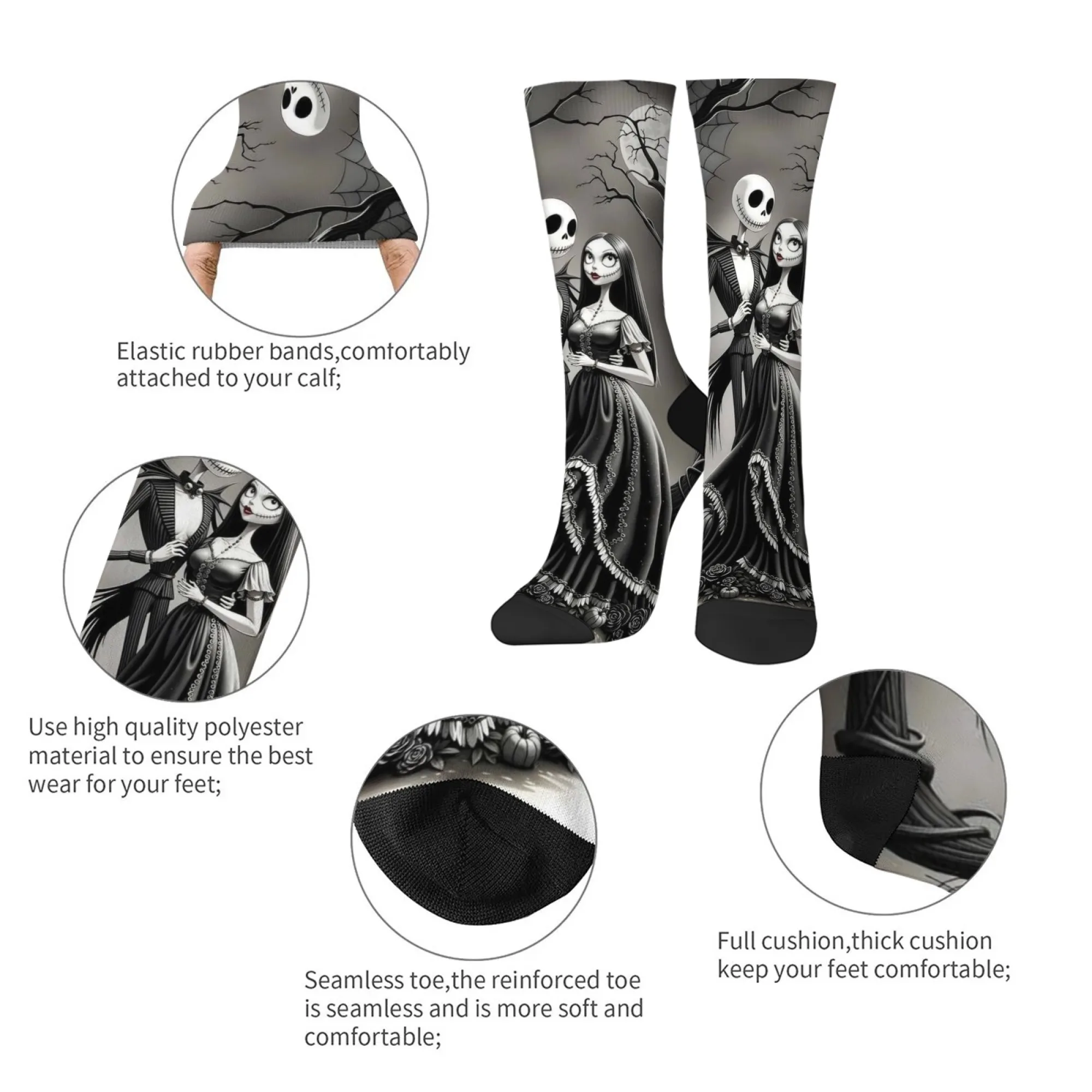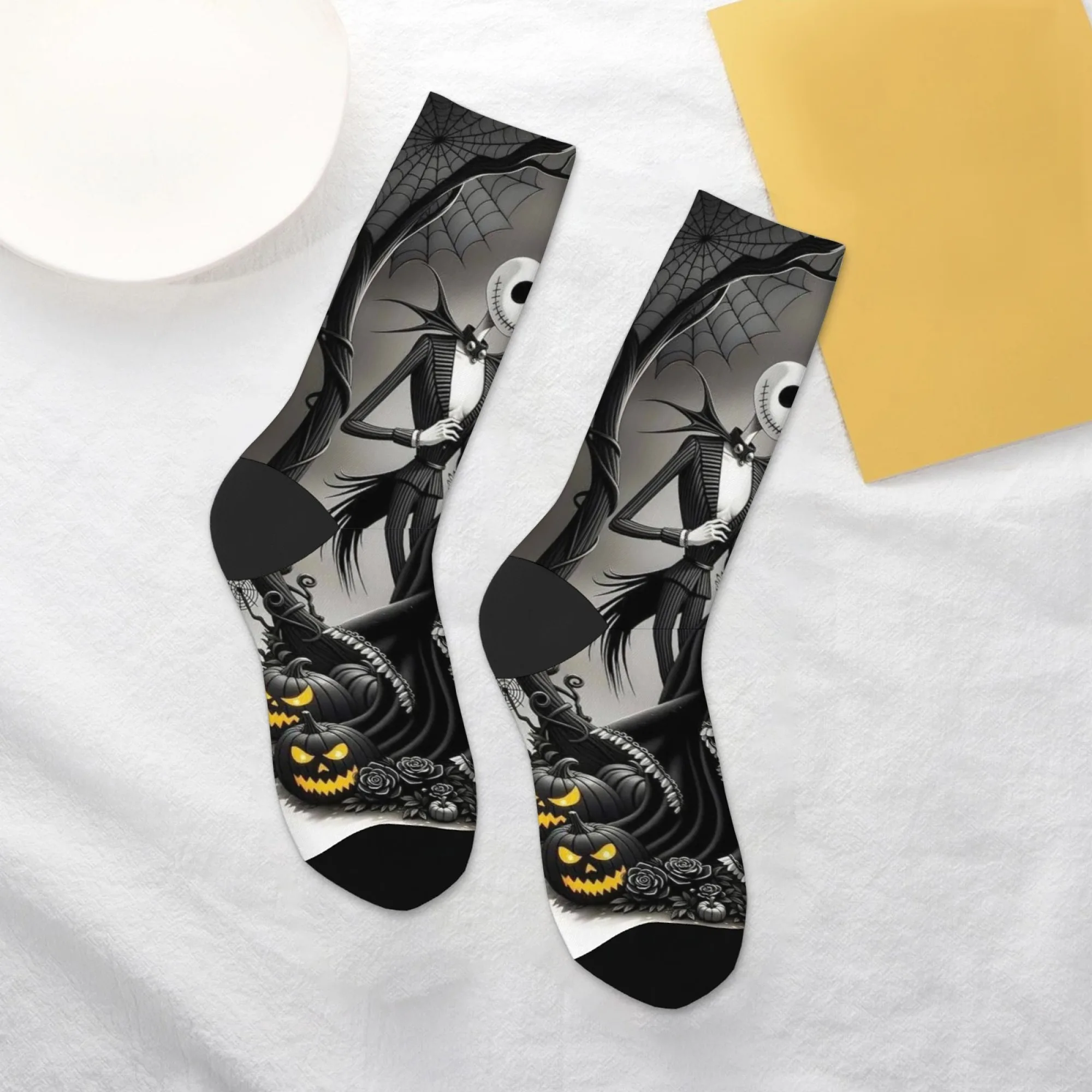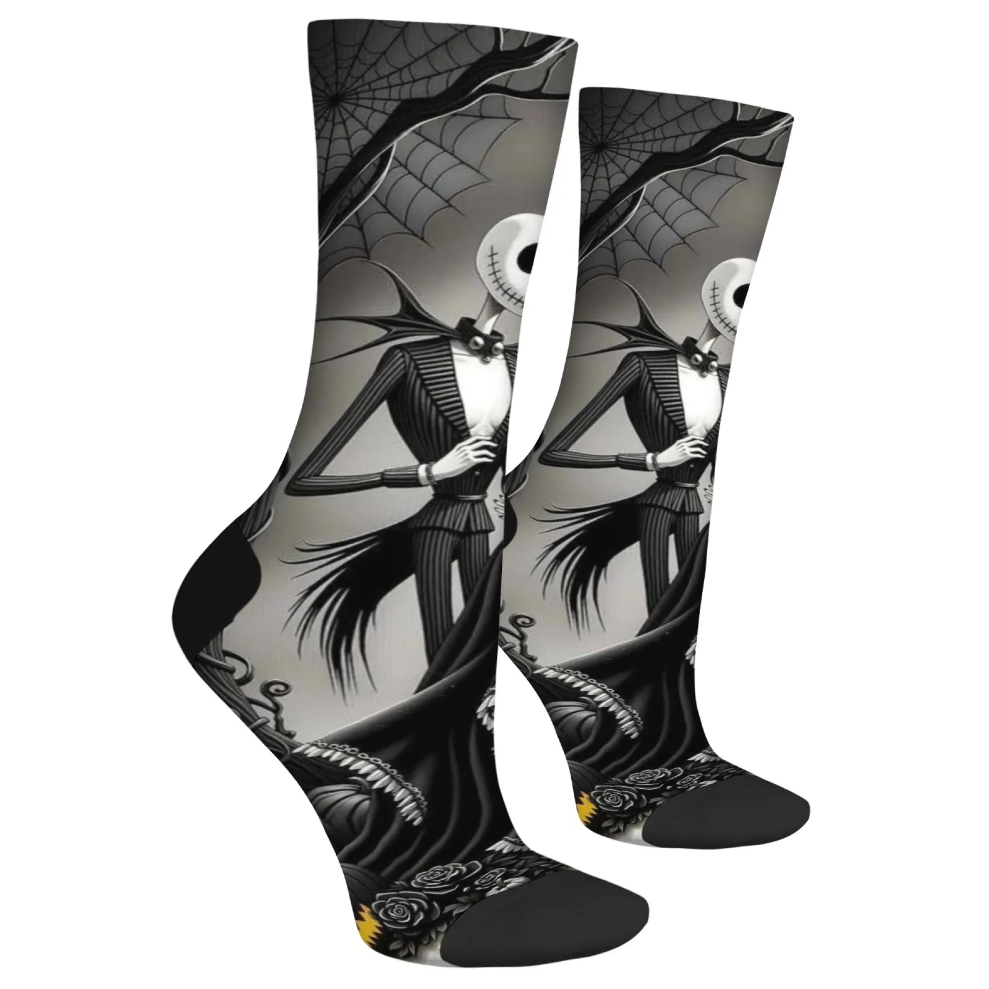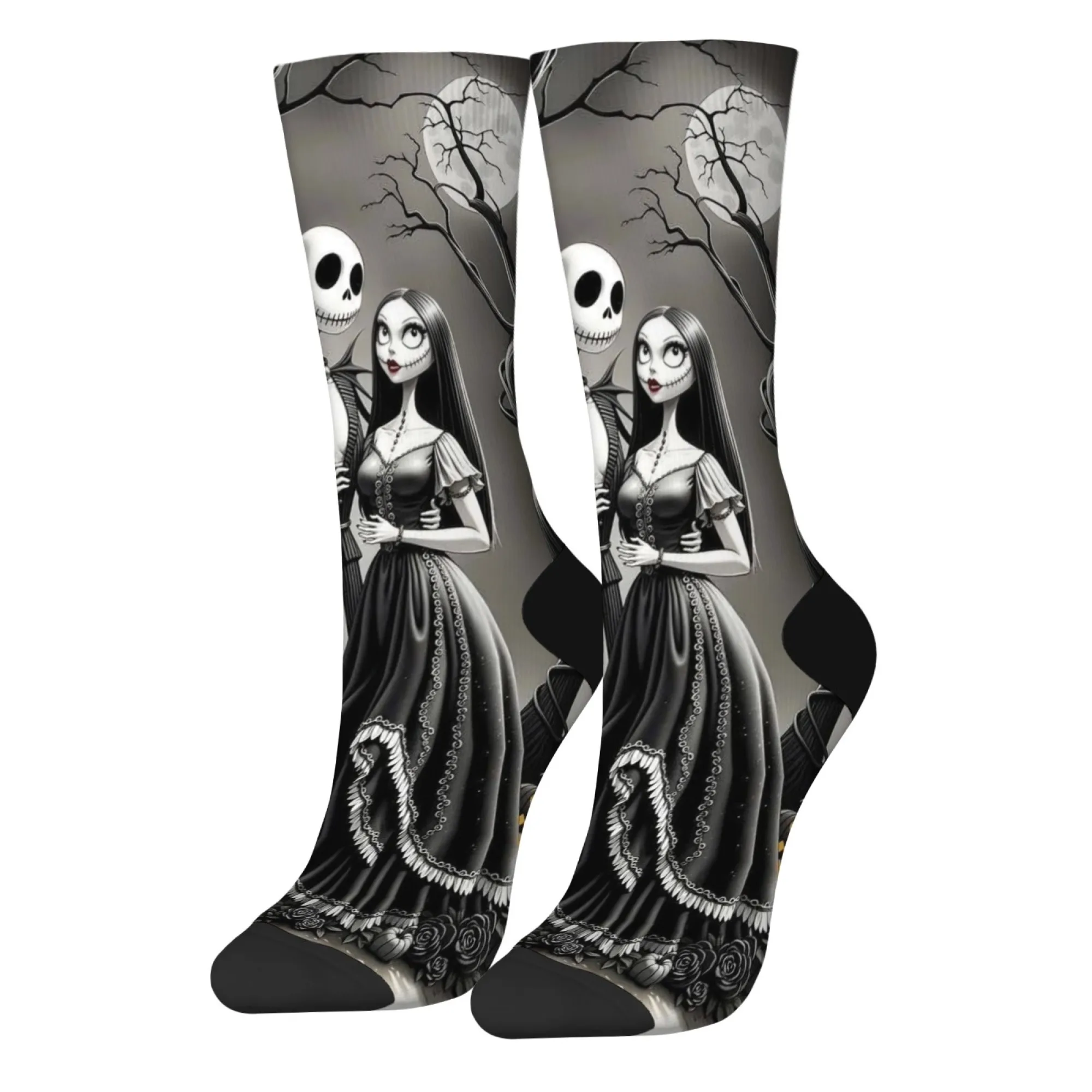 Meias casuais com tema Jack e Sally, meias confortáveis, respiráveis e antiderrapantes, novidade Harajuku retrô estilo Halloween meias masculinas