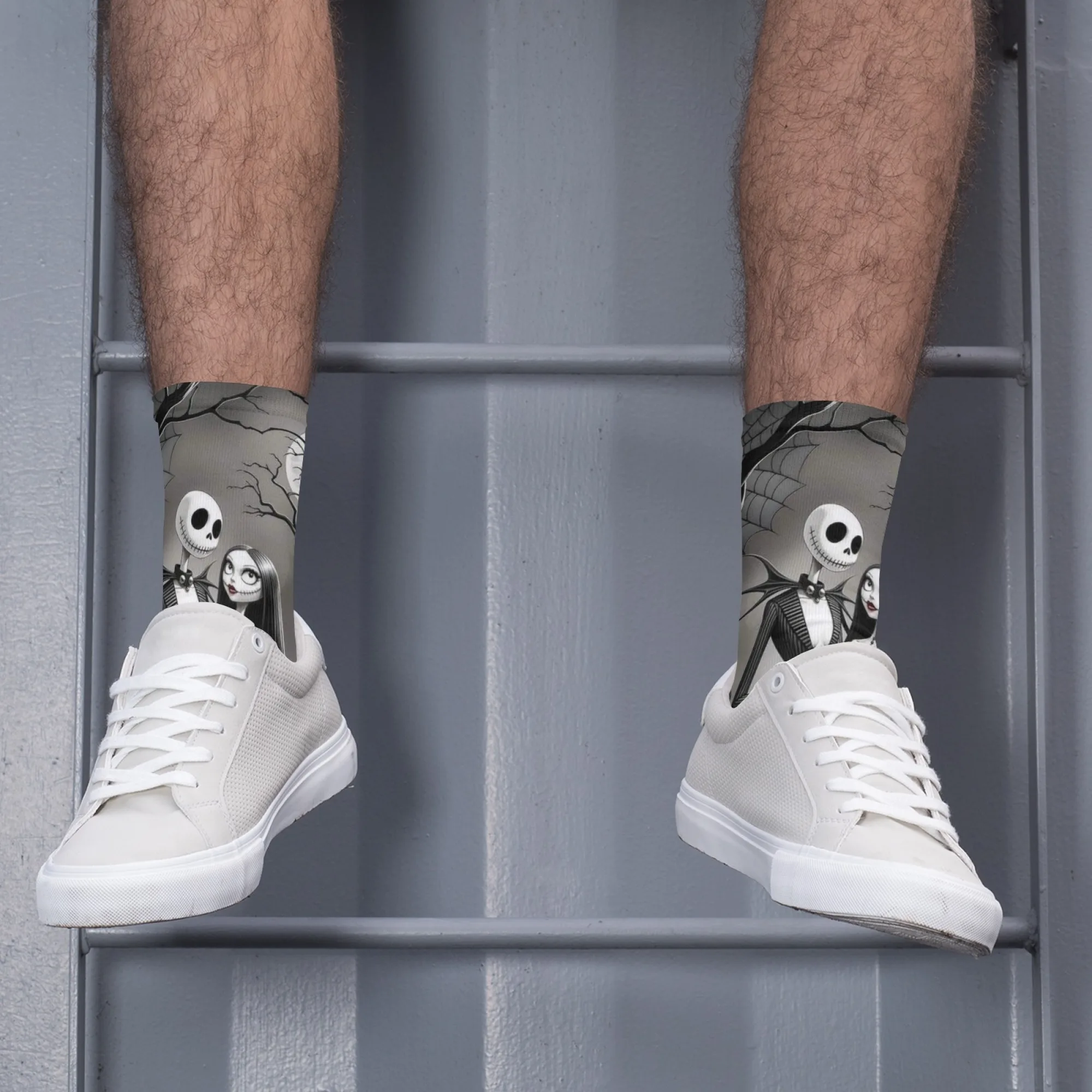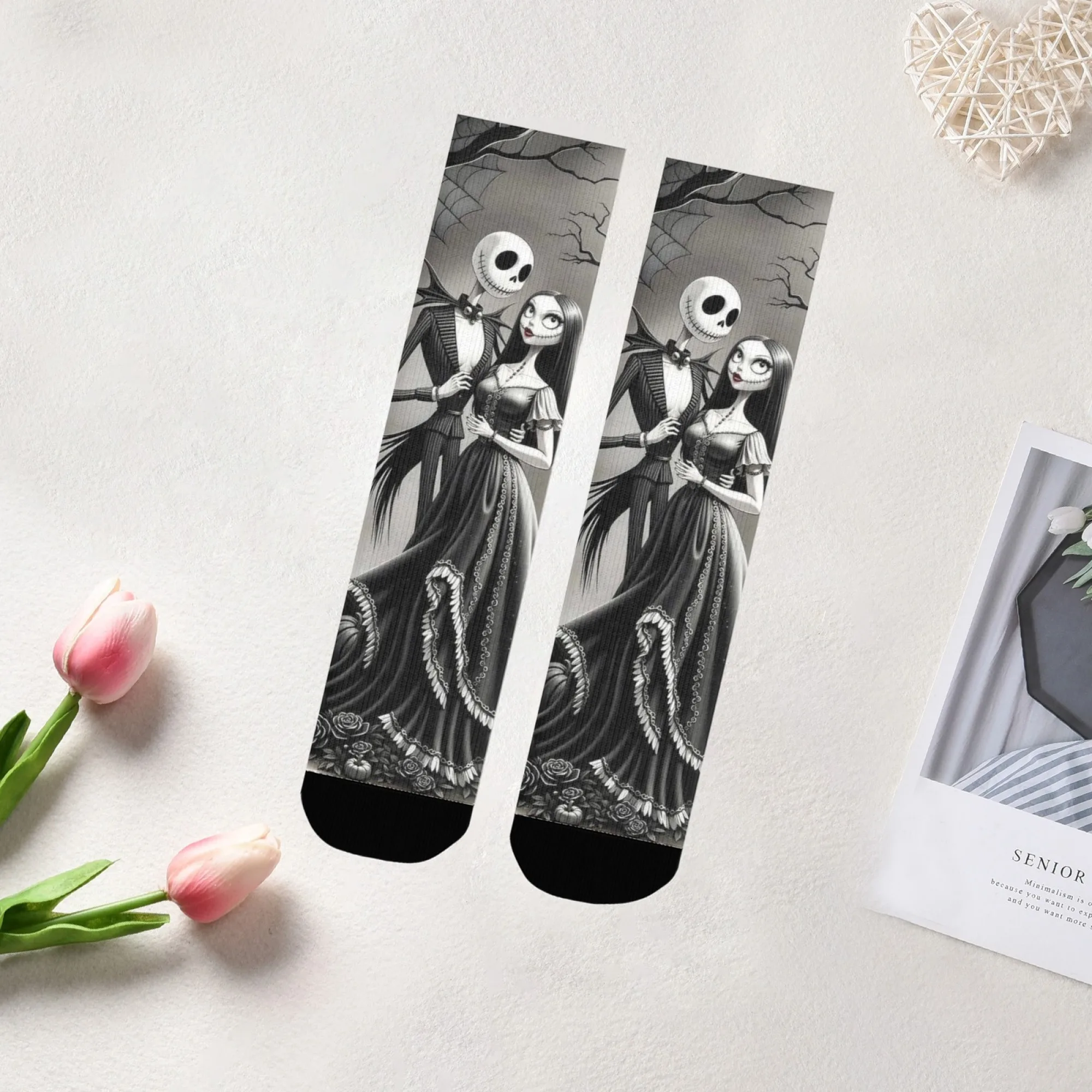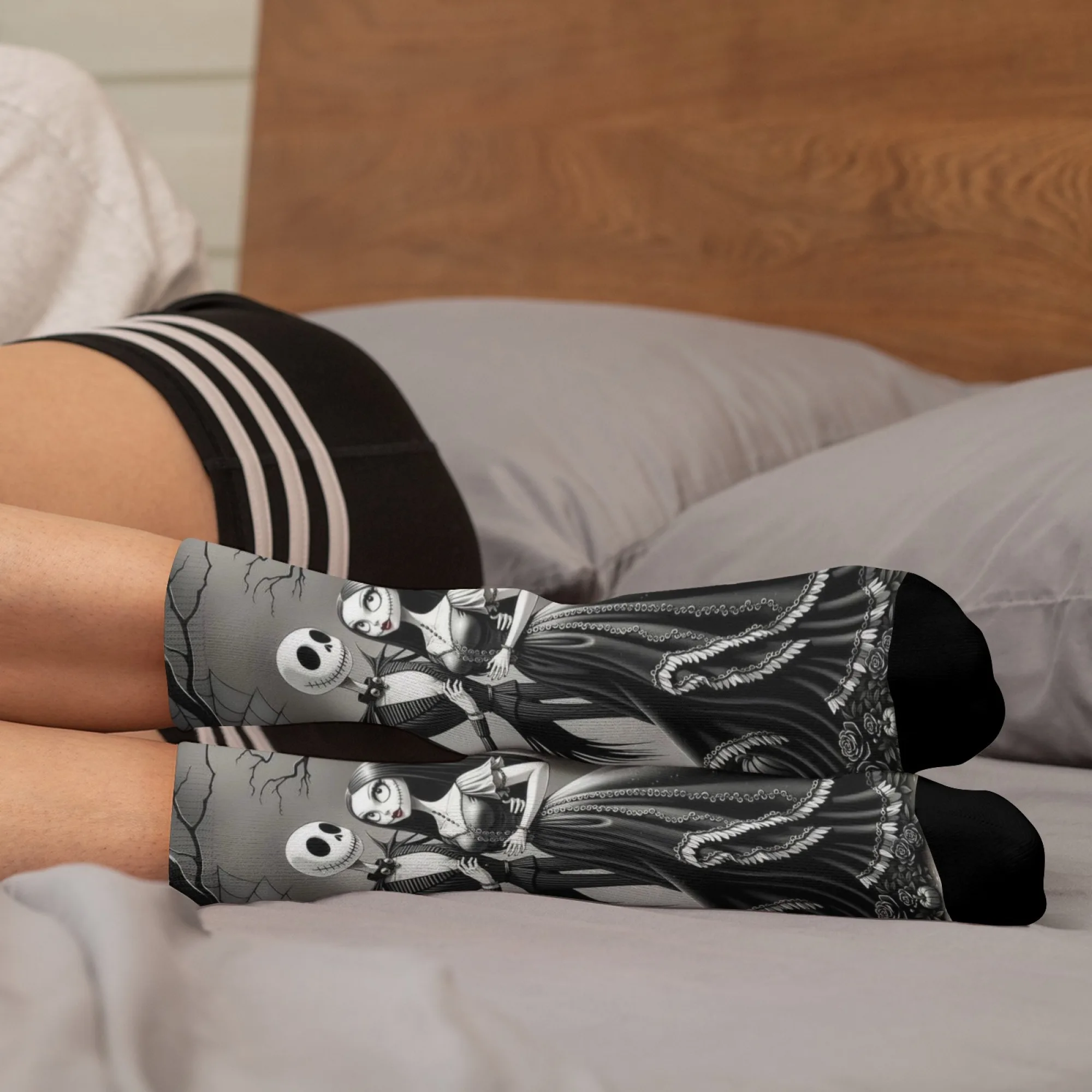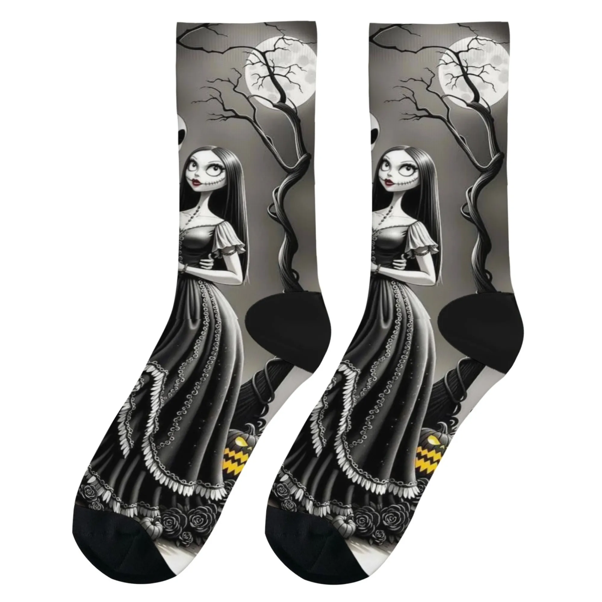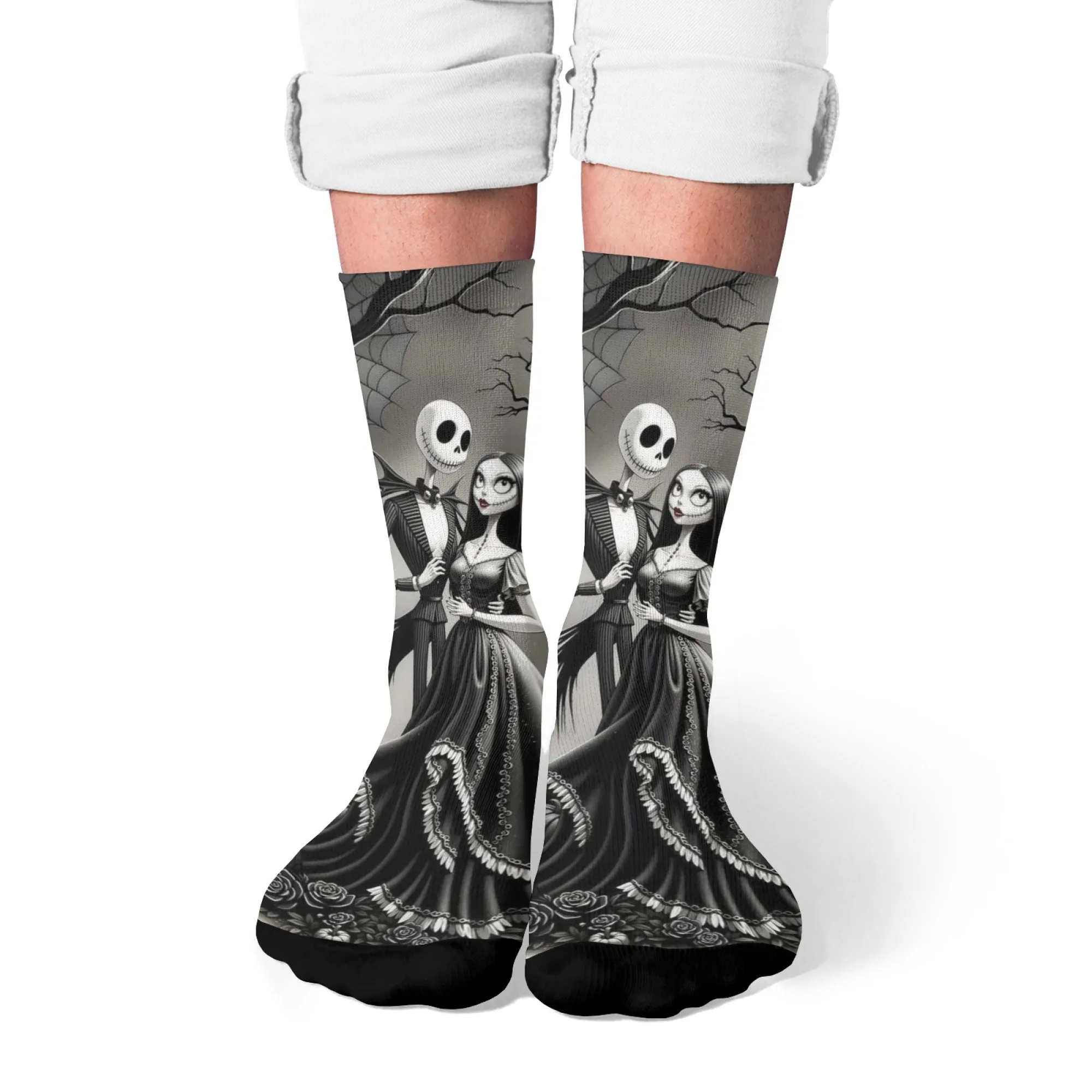 Meias casuais com tema Jack e Sally, meias confortáveis, respiráveis e antiderrapantes, novidade Harajuku retrô estilo Halloween meias masculinas