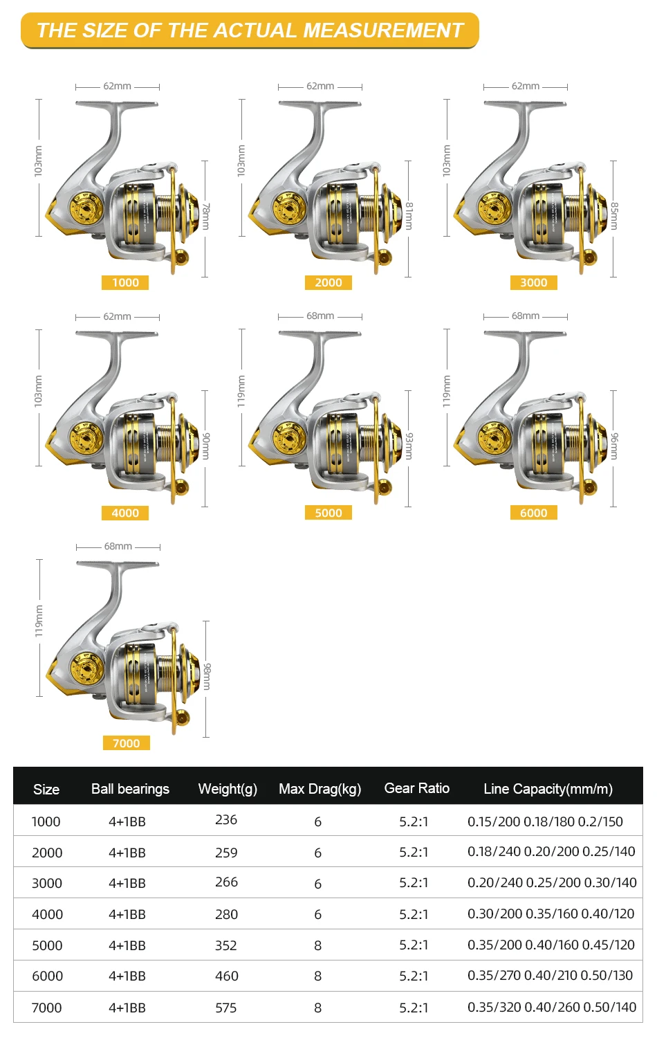 Meredith carretel de pesca giratório, carretel de metal 5.2:1, 4 + 1bb, rolamentos de esferas, carretel de pesca de carpa 1000-7000, copo de linha de metal, equipamento marítimo
