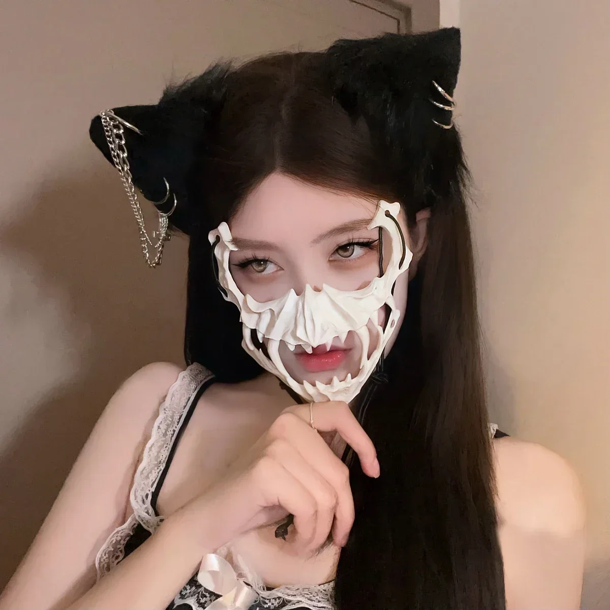 Metade do Rosto Crânio Máscara para Festa de Halloween, Anime Dragão, Deus Esqueleto, Osso, Animais Cosplay, Dança de Baile