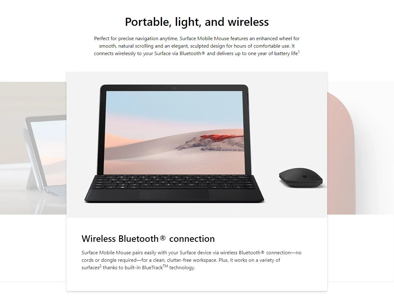Microsoft-mouse bluetooth móvel moderno, funciona em uma variedade de superfície, graças à tecnologia microsoft
