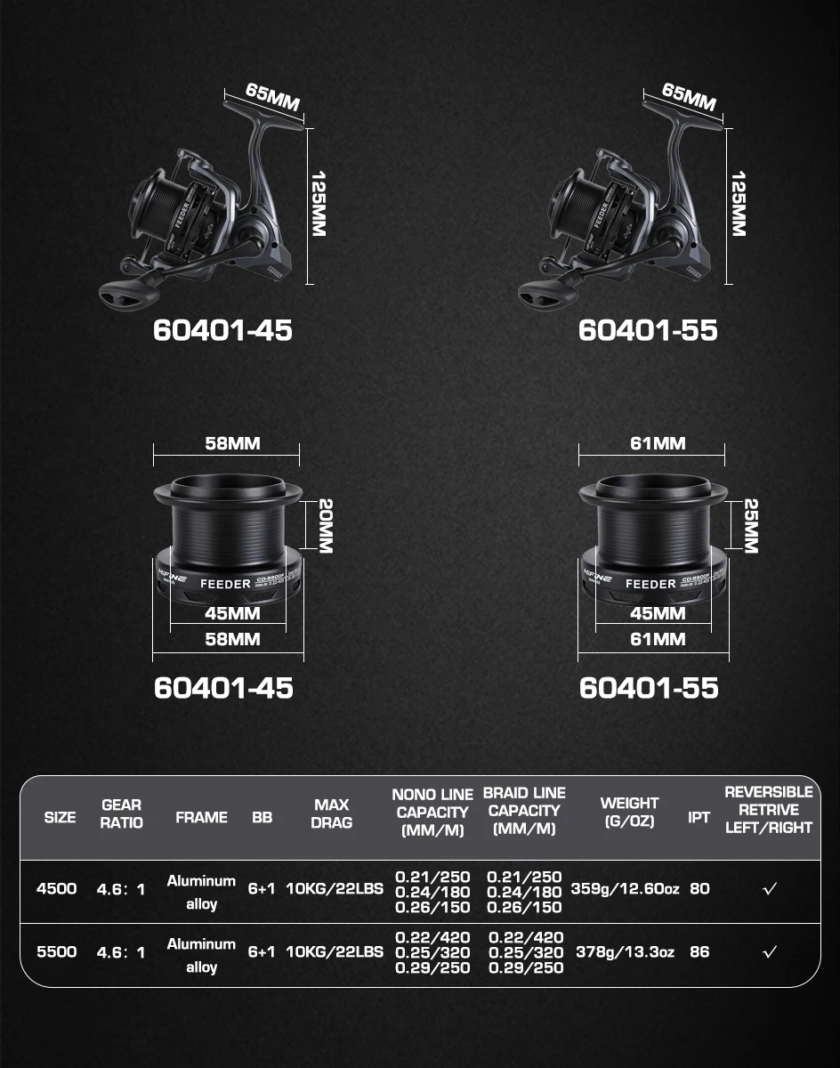 MIFINE FEEDER CONFIDENTE Carretel de pesca 4500 5500 10KG Max Drag Coil Professional 6 + 1 BB Worm Shaft System Spinning Feeder Reels