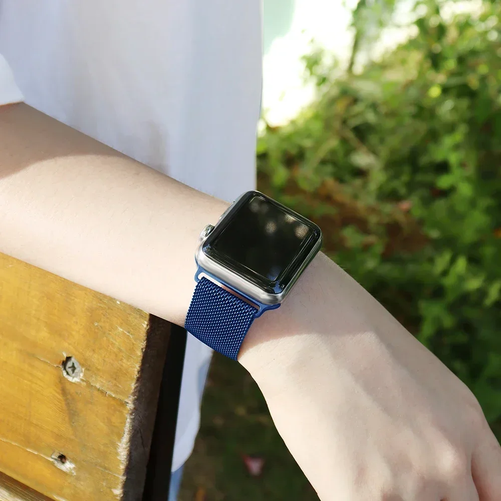 - > Milanese Loop Band para Apple Watch, Pulseira de Metal, Pulseira, Ultra, 49mm, 45mm, 44mm, 41mm, 40mm, iWatch Series 9, 8, 7, 6, 5, 4, 3, SE