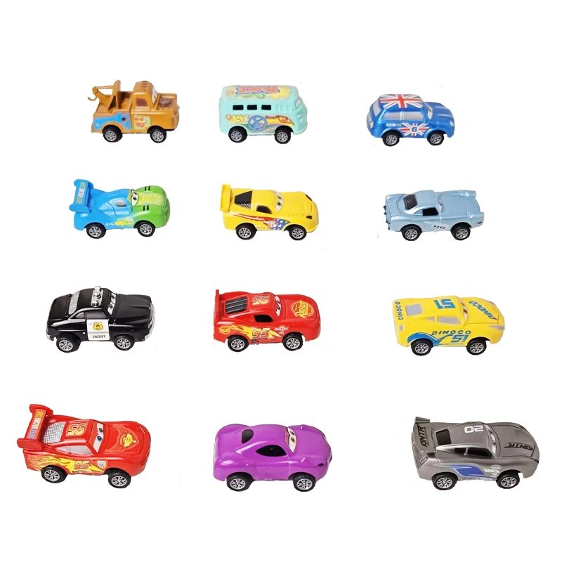 Mini 12 pçs disney pixar carros 3 pistão copo rebote carro coleção relâmpago mcqueen jackson tempestade pvc modelo de carro brinquedo para crianças
