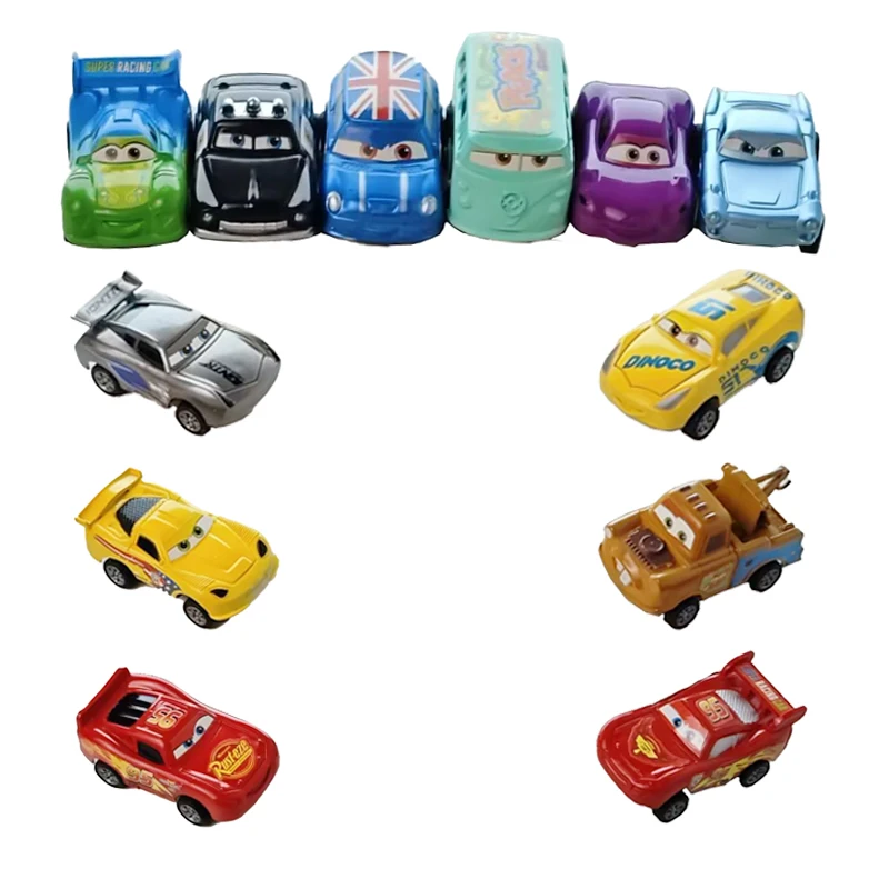 Mini 12 pçs disney pixar carros 3 pistão copo rebote carro coleção relâmpago mcqueen jackson tempestade pvc carro modelo brinquedo para childre