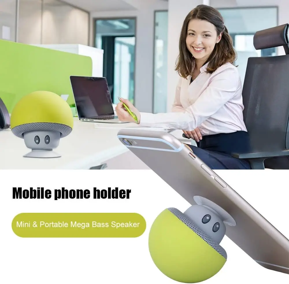 - > Mini alto-falante cogumelo Bluetooth, alto-falante de áudio sem fio 5V 3W com ventosa, design de cogumelo