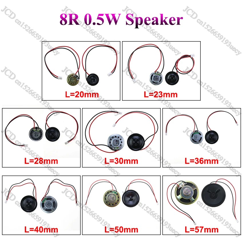 - > Mini alto-falante ultra-fino, 1x8 ohms, 8r, 0.5w, diâmetro 20mm, 23mm, 28mm, 30mm, 36mm, 40mm, 50mm, 57mm