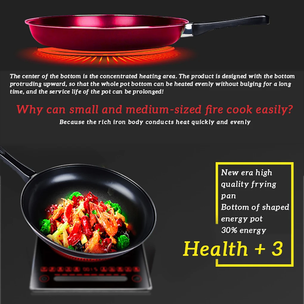 A panela antiaderente é feita de material de ferro fundido, que é durável, seguro e saudável.
