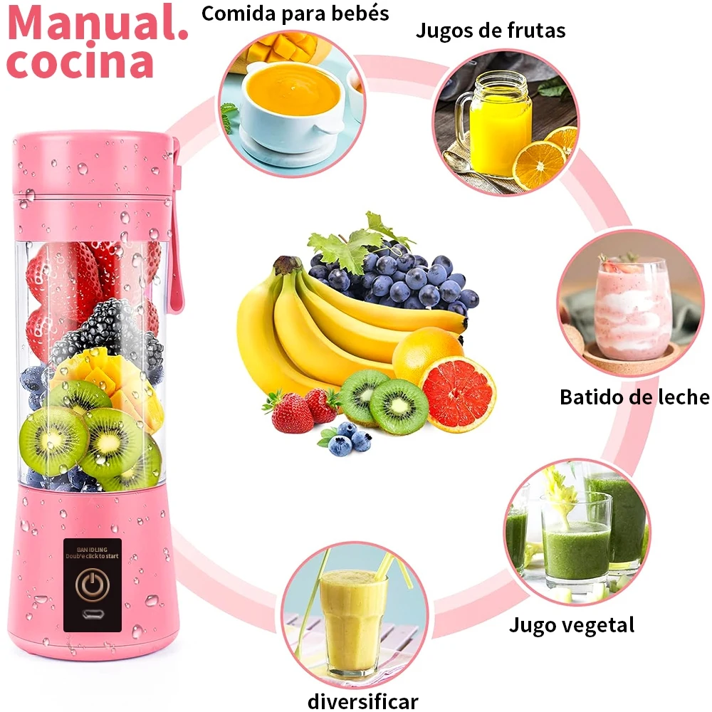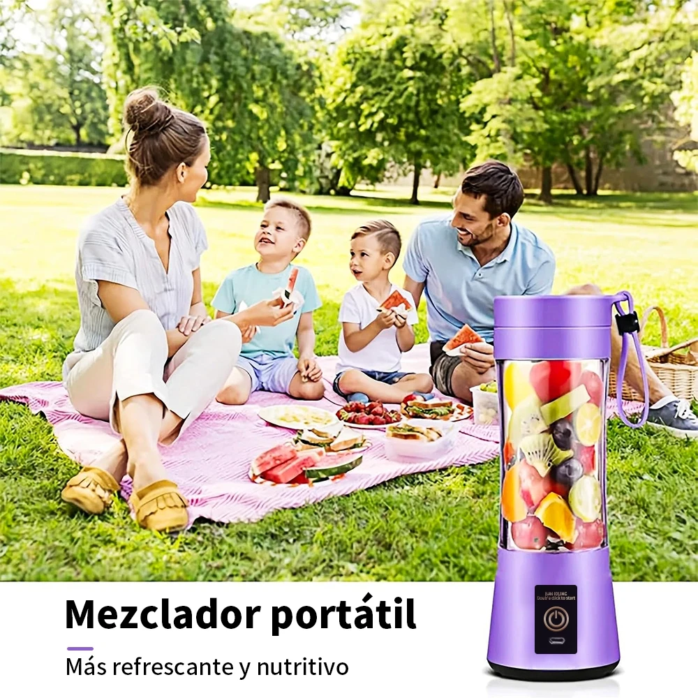 Mini Liquidificador Portatil Mixer Juice Garrafa Shake 6 Laminas + Cabo USB 380ml