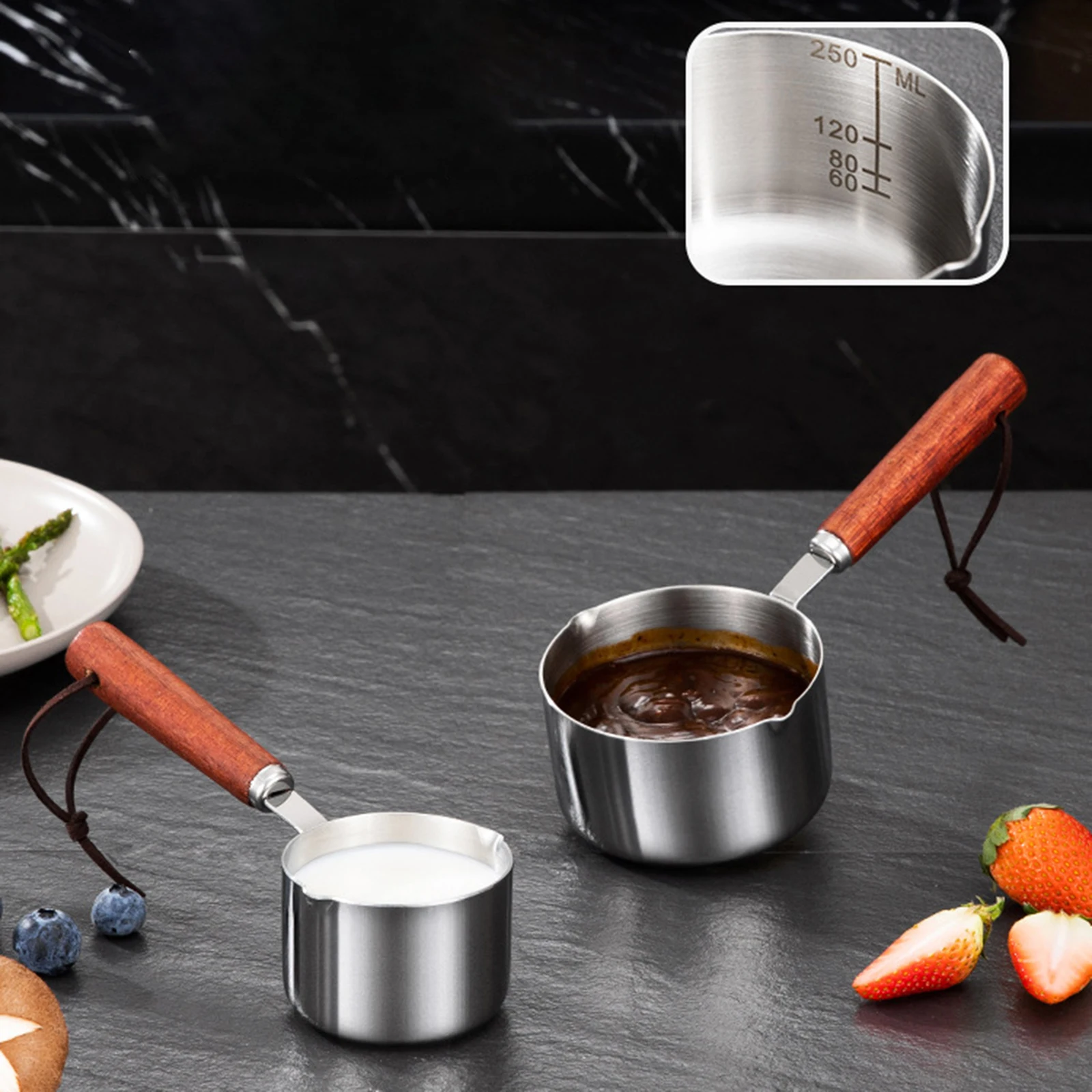 Mini panela de sopa de aço inoxidável 304 com alça de madeira, panela de molho, pequena panela para fazer molhos, Aquecimento Leite Cozinha
