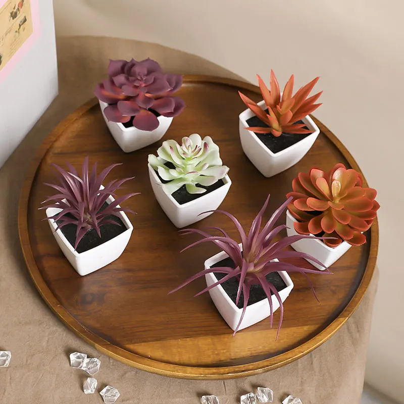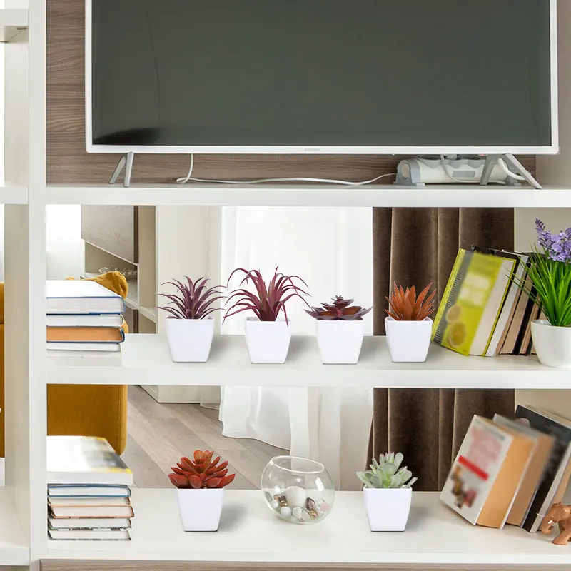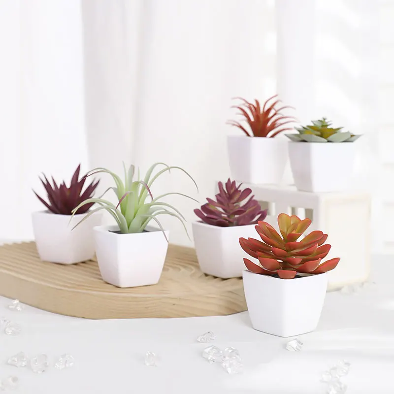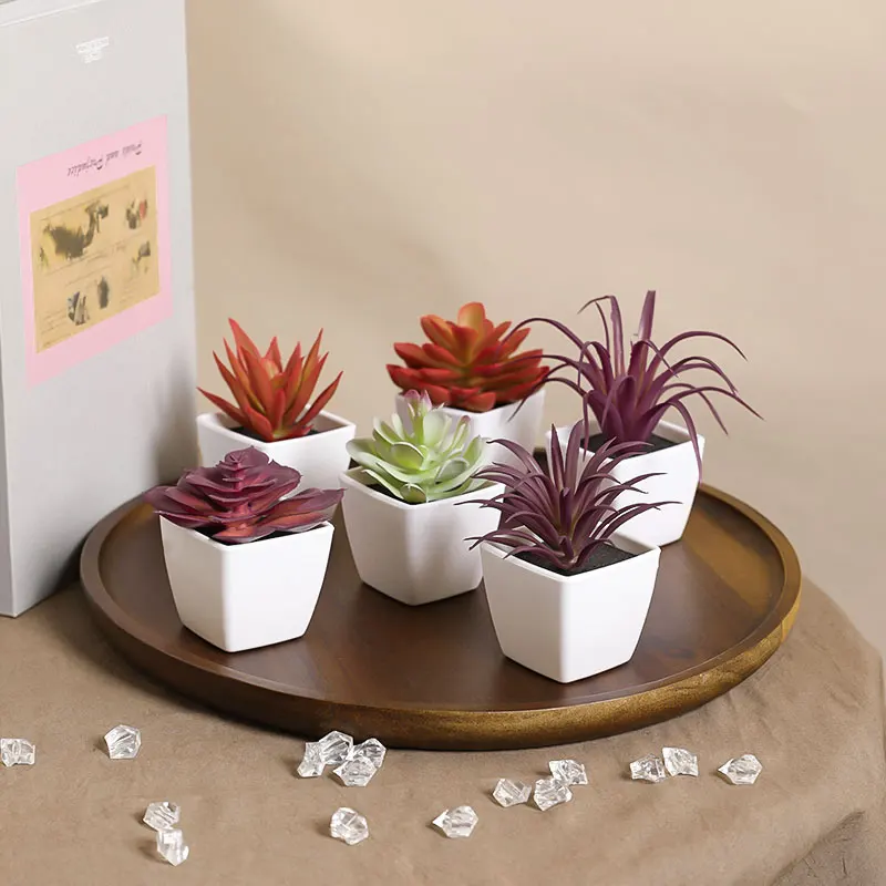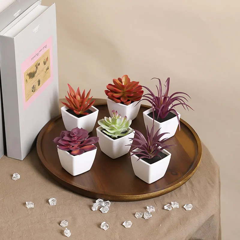 Mini suculenta artificial planta verde plástico Wwhite bacia, Home Window Sill, Restaurante Desktop Bookshelf Decoração, 6pcs por conjunto