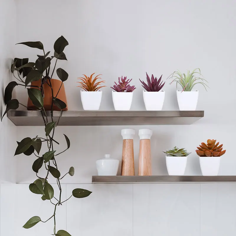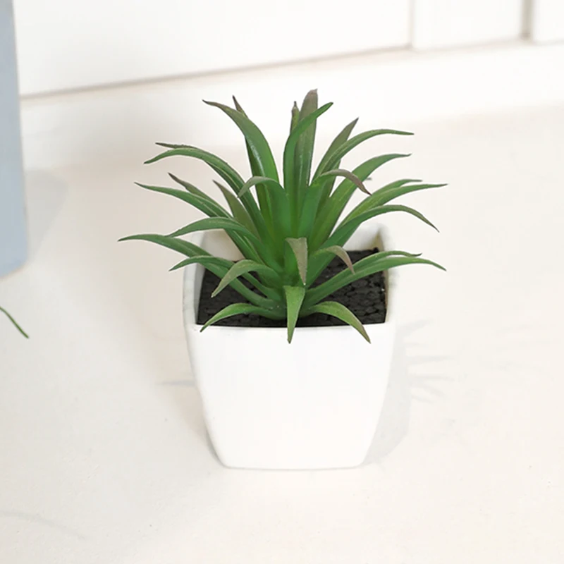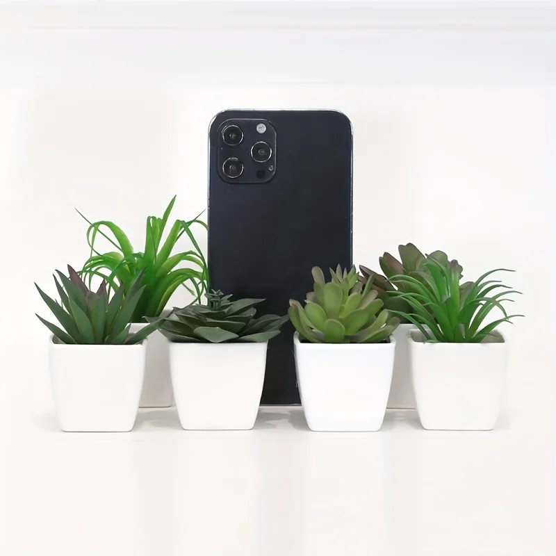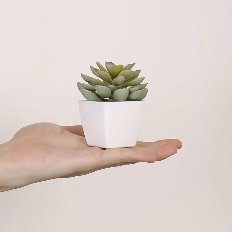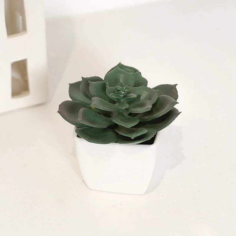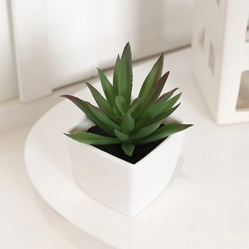 Mini suculenta artificial planta verde plástico Wwhite bacia, Home Window Sill, Restaurante Desktop Bookshelf Decoração, 6pcs por conjunto