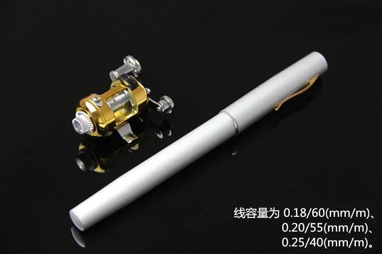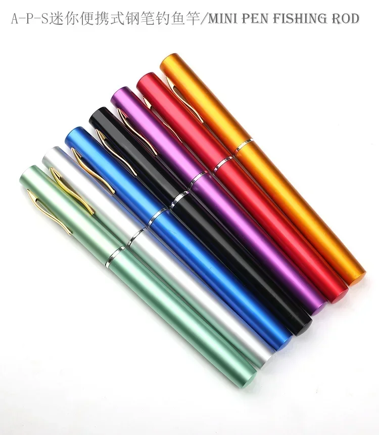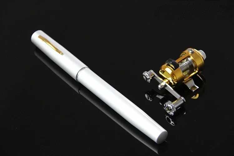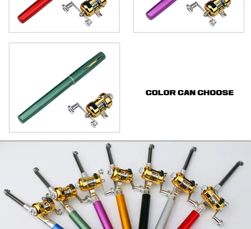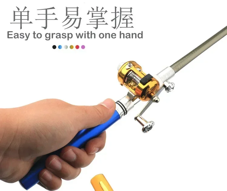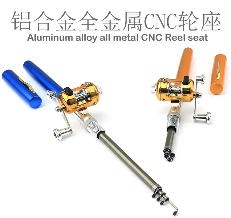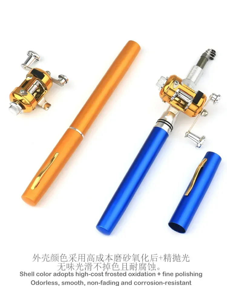 Mini vara de pesca telescópica portátil, 20cm, formato de caneta, vara de pesca dobrada com roda de carretel, mini vara de pesca portátil