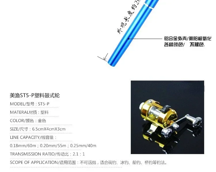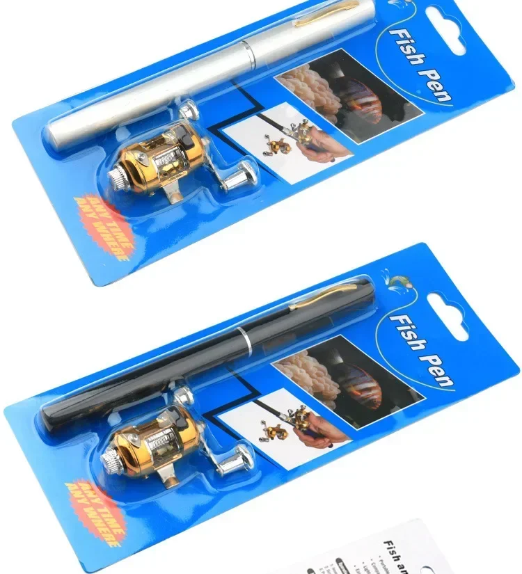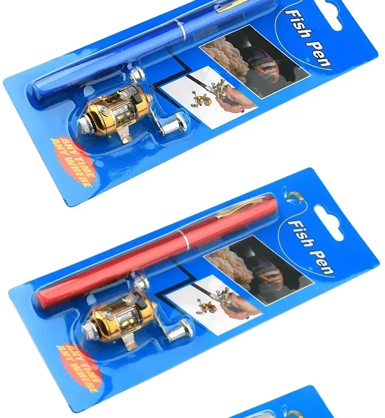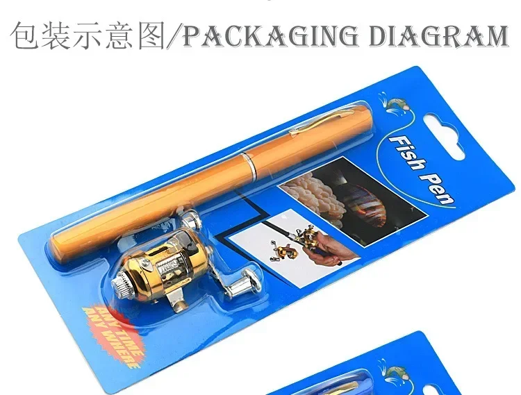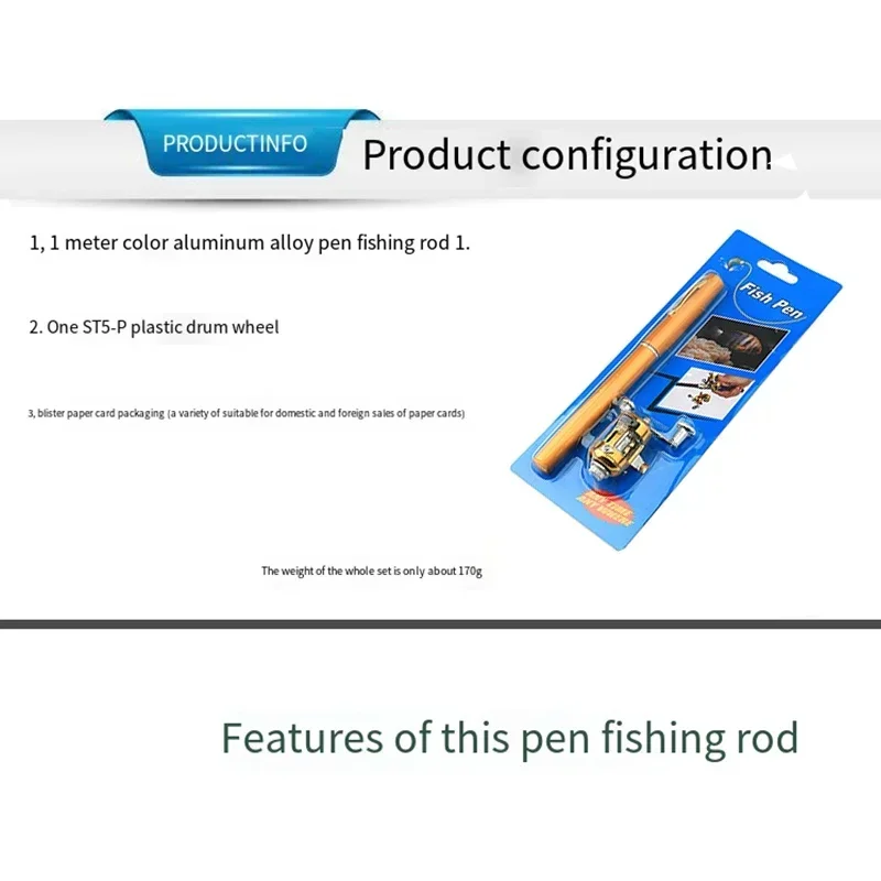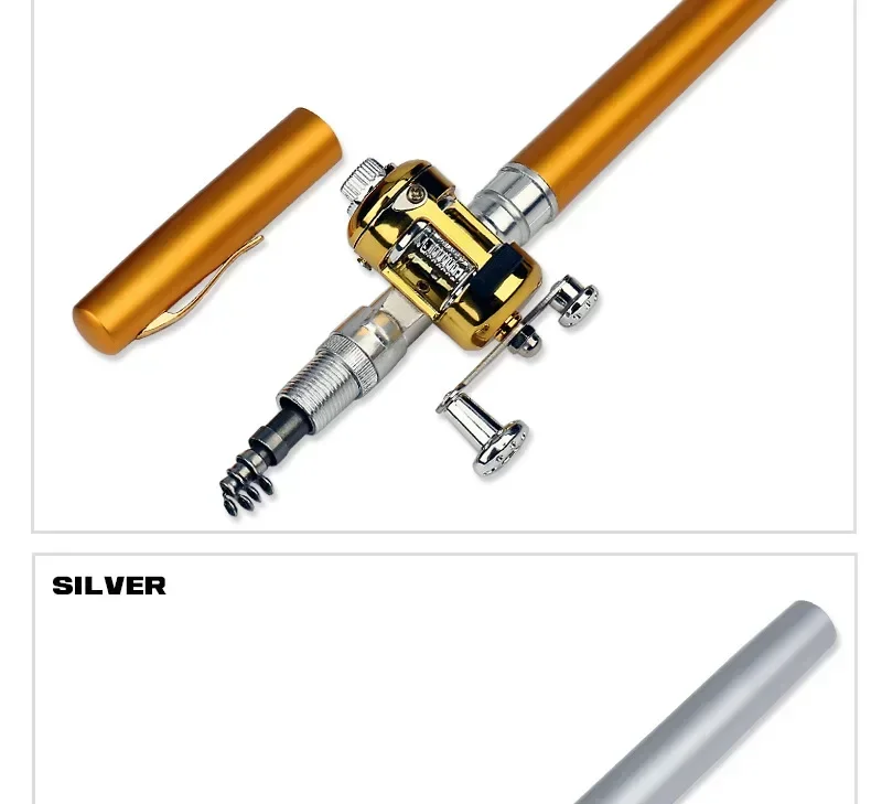 Mini vara de pesca telescópica portátil, 20cm, formato de caneta, vara de pesca dobrada com roda de carretel, mini vara de pesca portátil