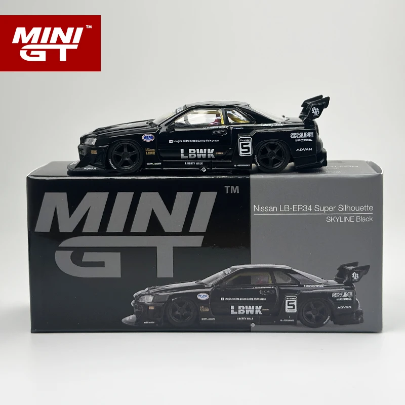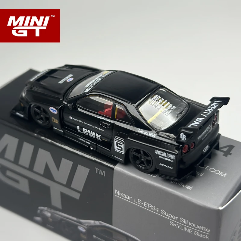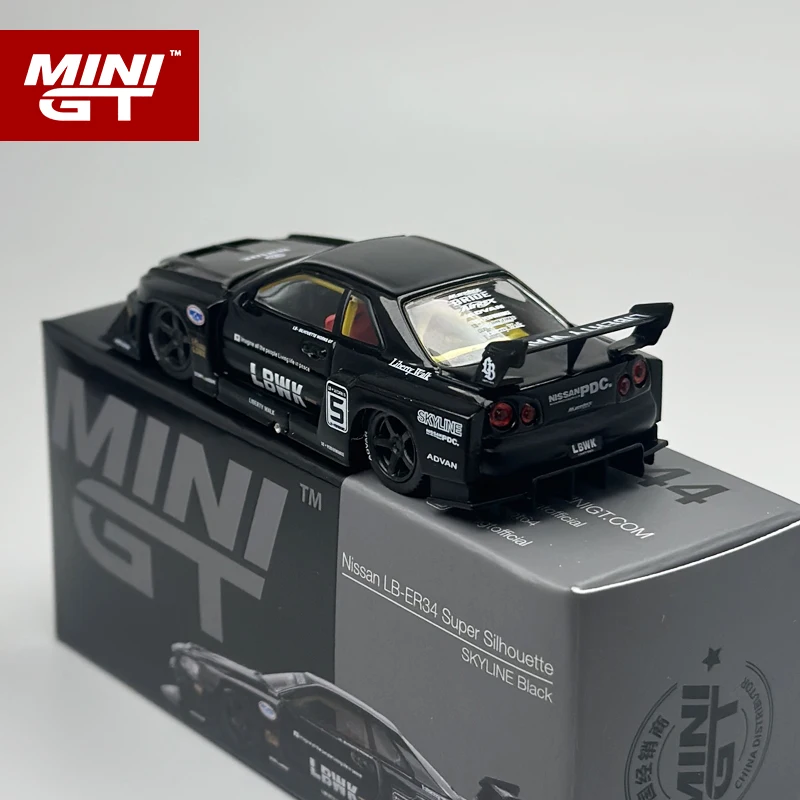 MINIGT 1:64 Nissan LB-ER34 Super Silhouette SKYLINE Carro em liga preta modelo 844